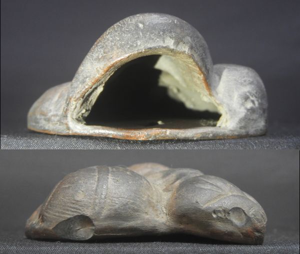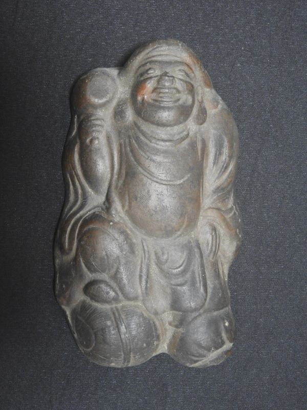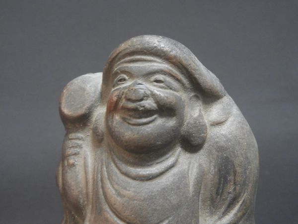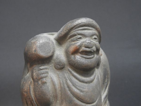掛花 備前焼 大黒天 明治期 花入れ 花器 壁飾 / 煎茶道具 茶道具 【送料無料】