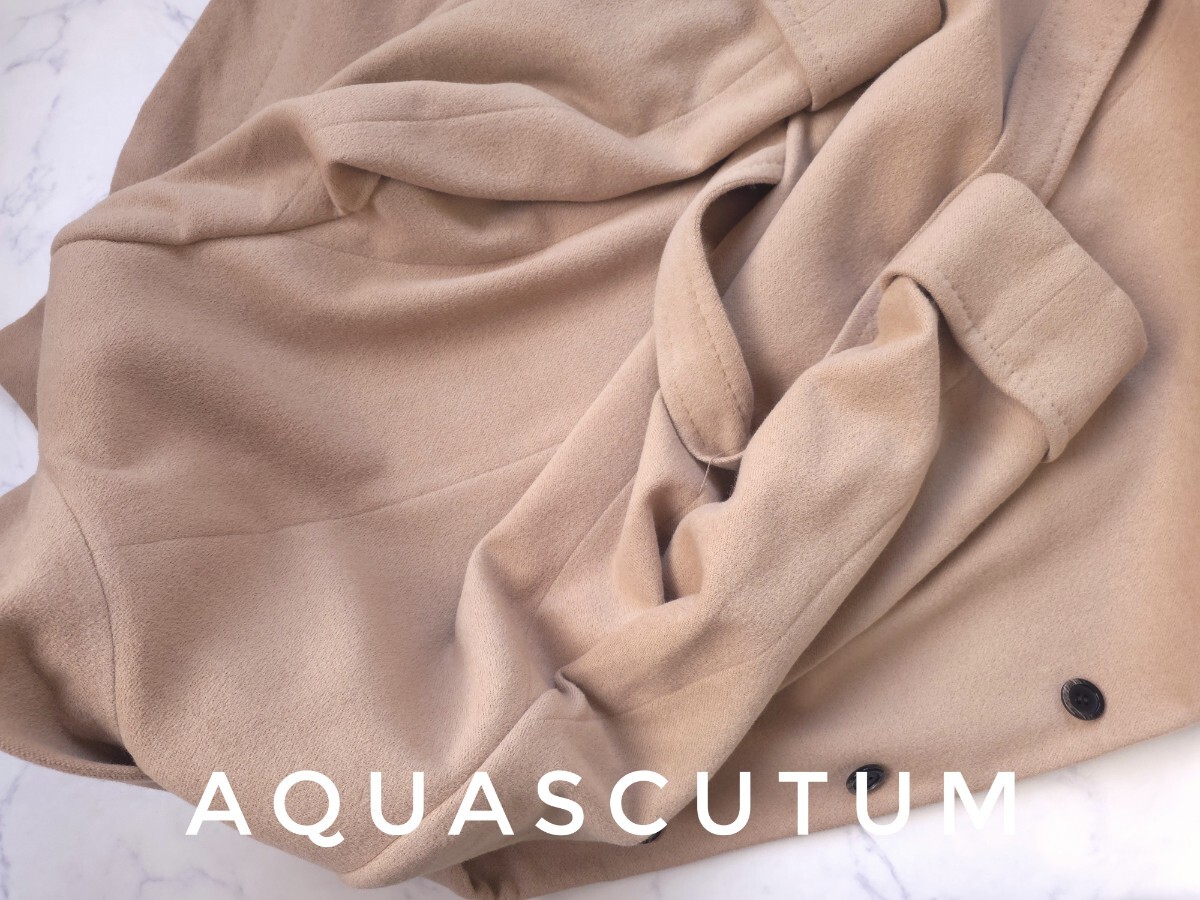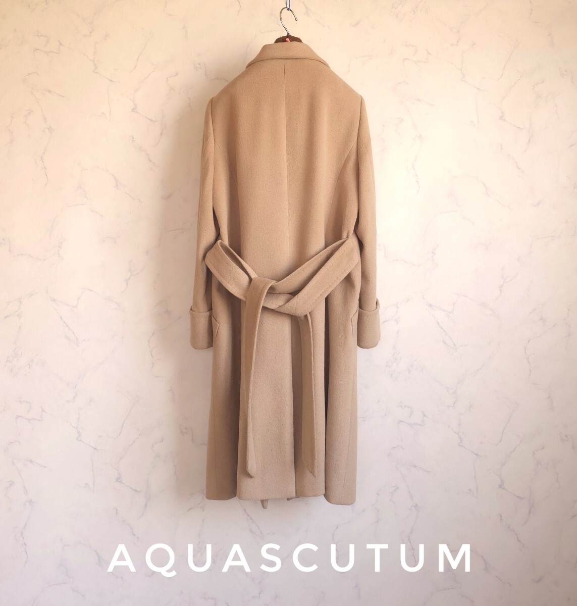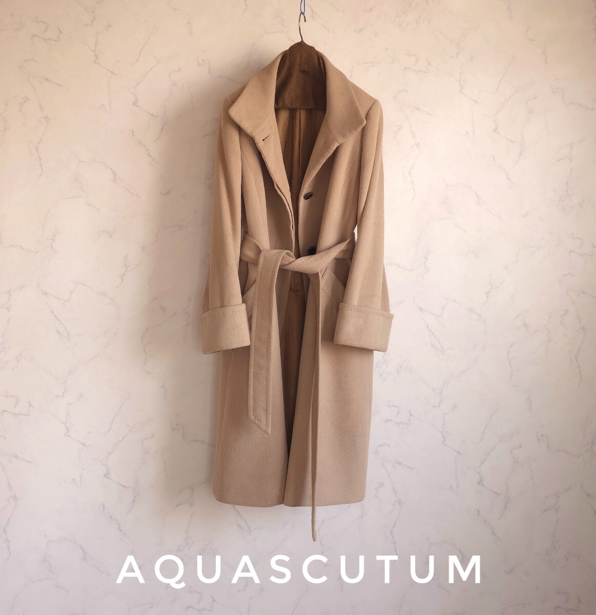 このアクアスキュータムのコートで、リラックスした心地よさと洗練された品格を両立させてみませんか。
