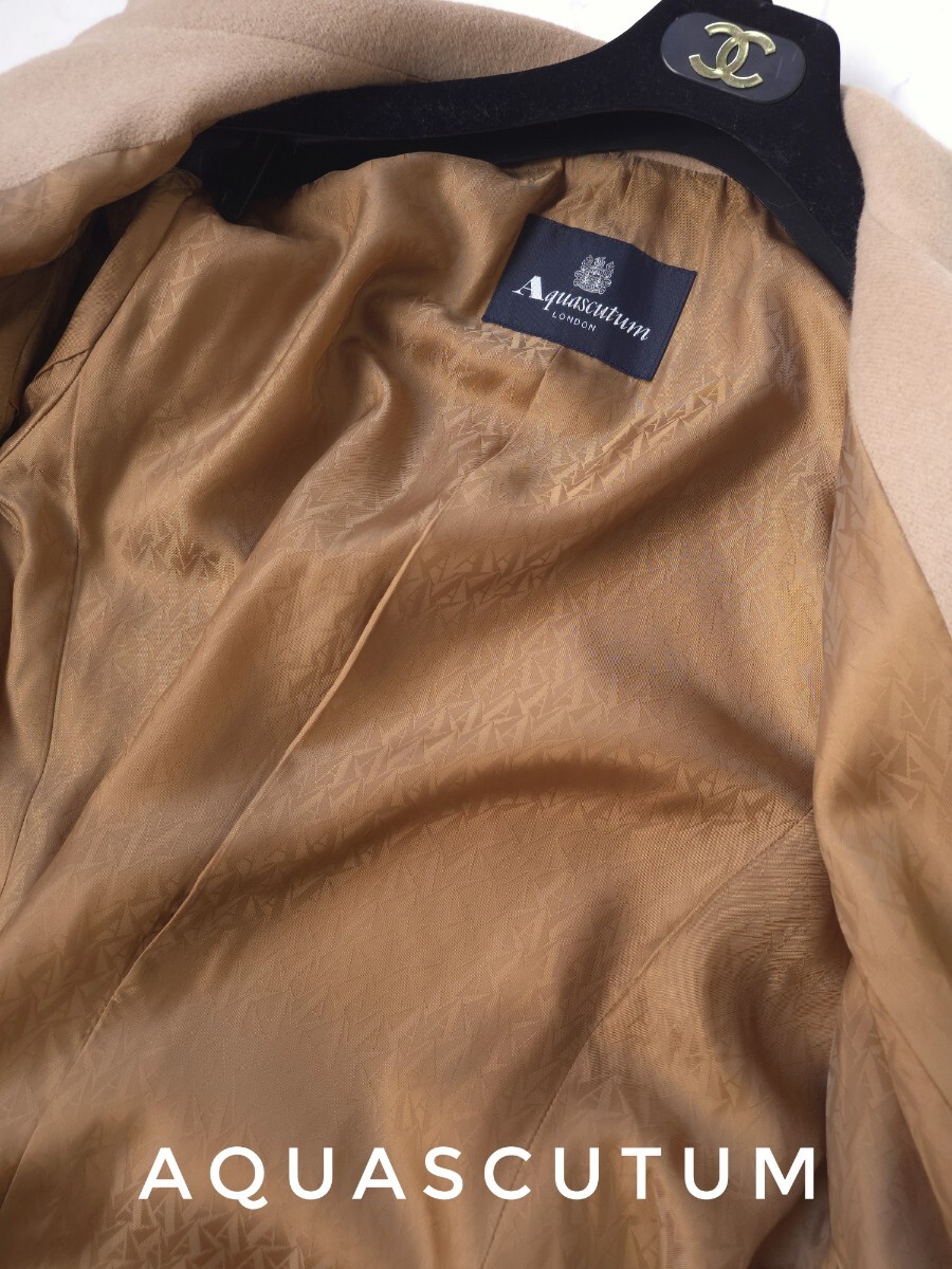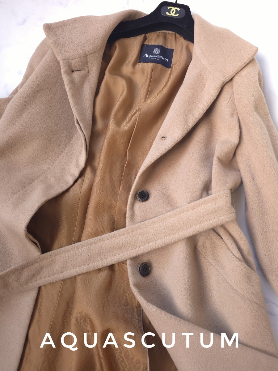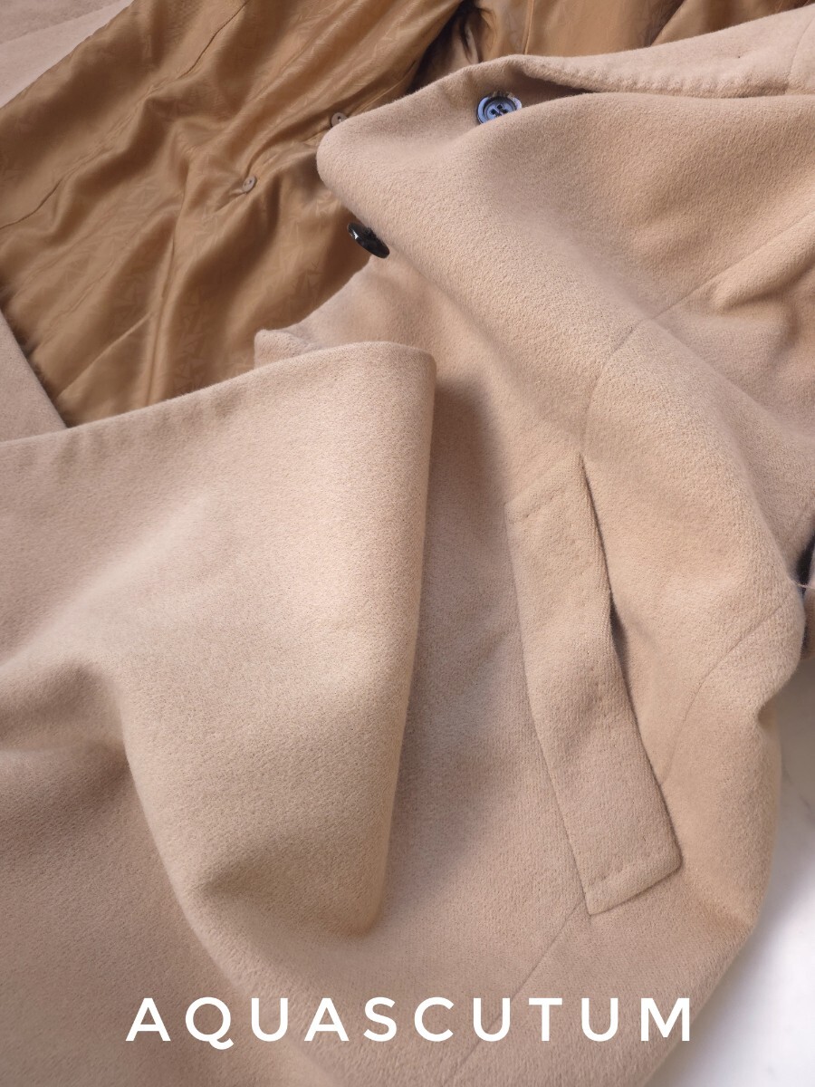 このアクアスキュータムのコートで、リラックスした心地よさと洗練された品格を両立させてみませんか。