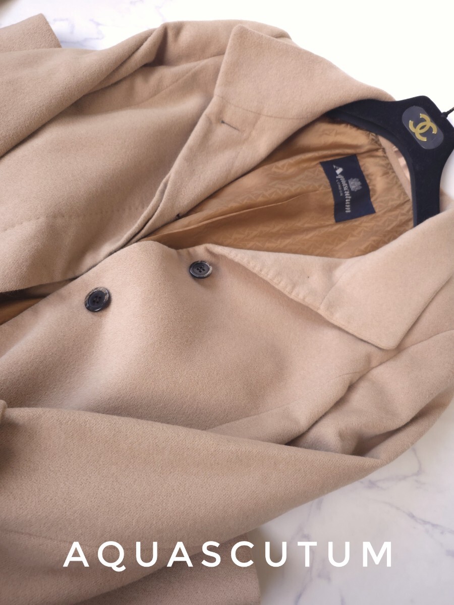 またおしゃれなシルエットにかっこいい王道Aquascutumのコートは女性らしさと程よく凛としたムードを演出してくれ、羽織るだけでサマになります。