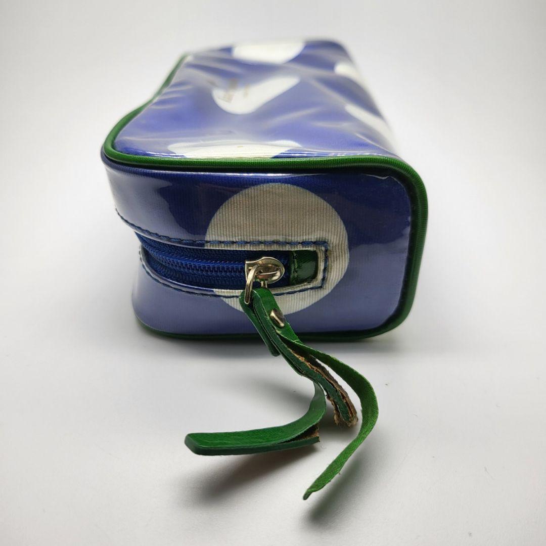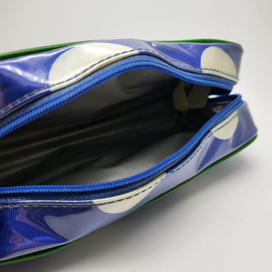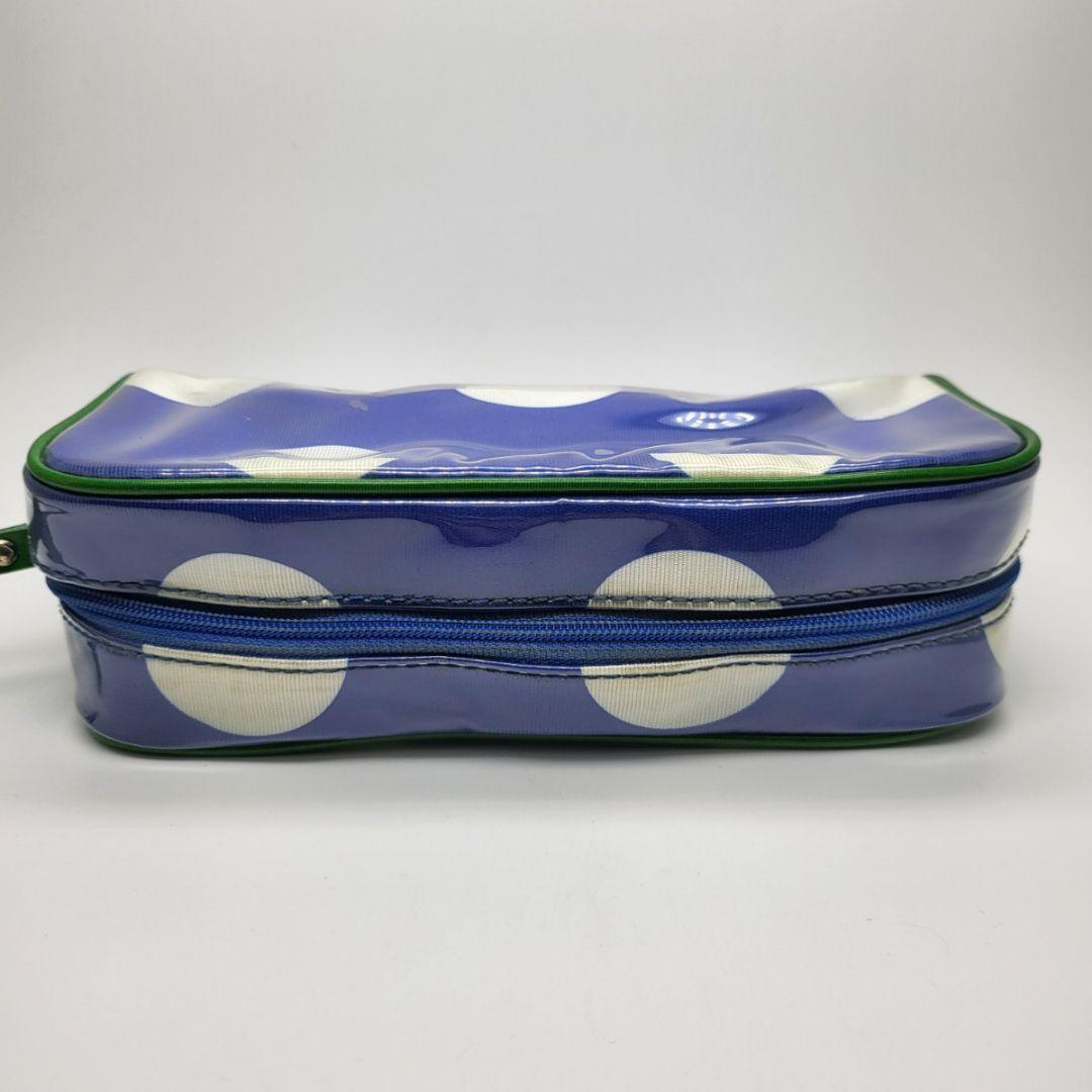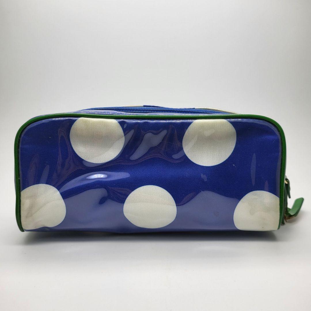 ホワイトのみずたま模様が描かれたブルー地の生地が使用されており、爽やかで清潔感のある印象を与えます。