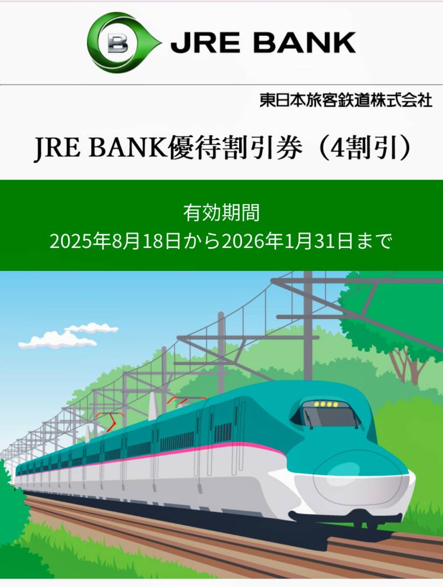取引ナビで「JRE BANK優待割引券番号」と「パスワード」をお知らせします。現物の送付はありません。