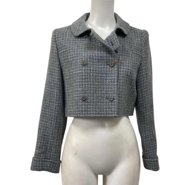 ショートジャケット ツイード 長袖 アウター ジャケット ショート丈 ダブルブレスト