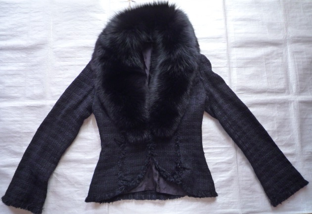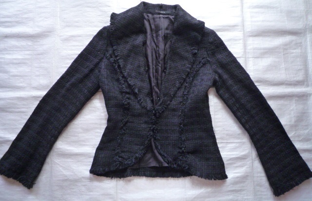 お色は、黒と混のミックス織り地で、秋冬のお洋服です。