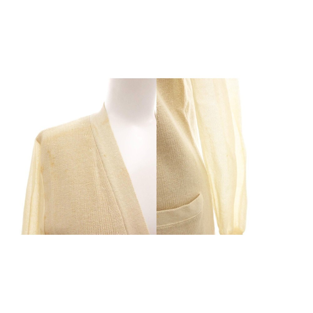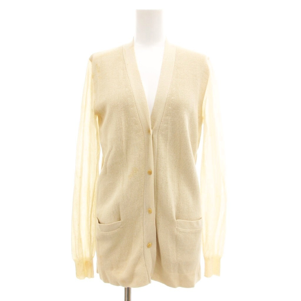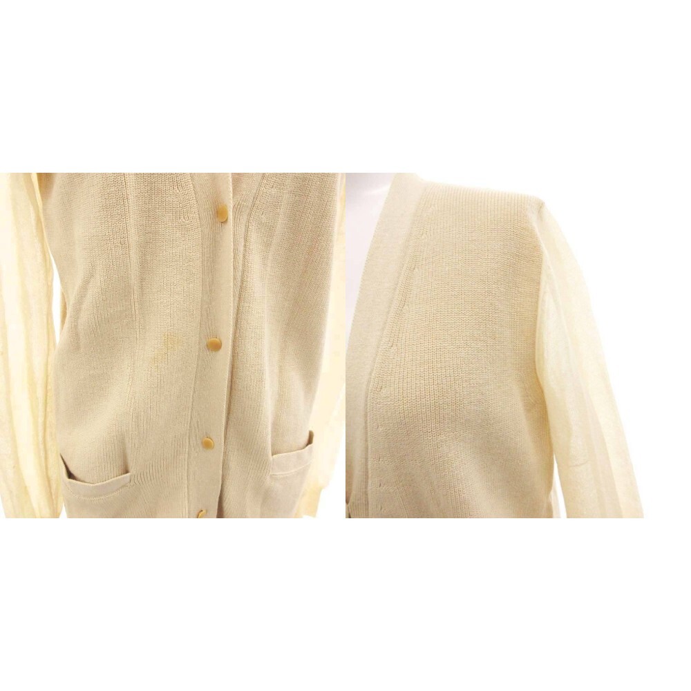 クロエ CHLOE カーディガン リネン混 切替 シアー 長袖 XS ライトベージュ /JS ☆AA★ レディース