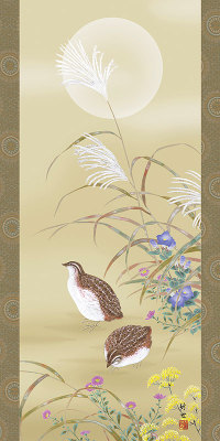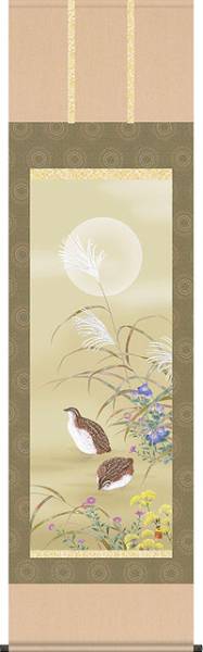 田村竹世 秋草に鶉 掛軸 掛け軸 新品 style=width:100%;