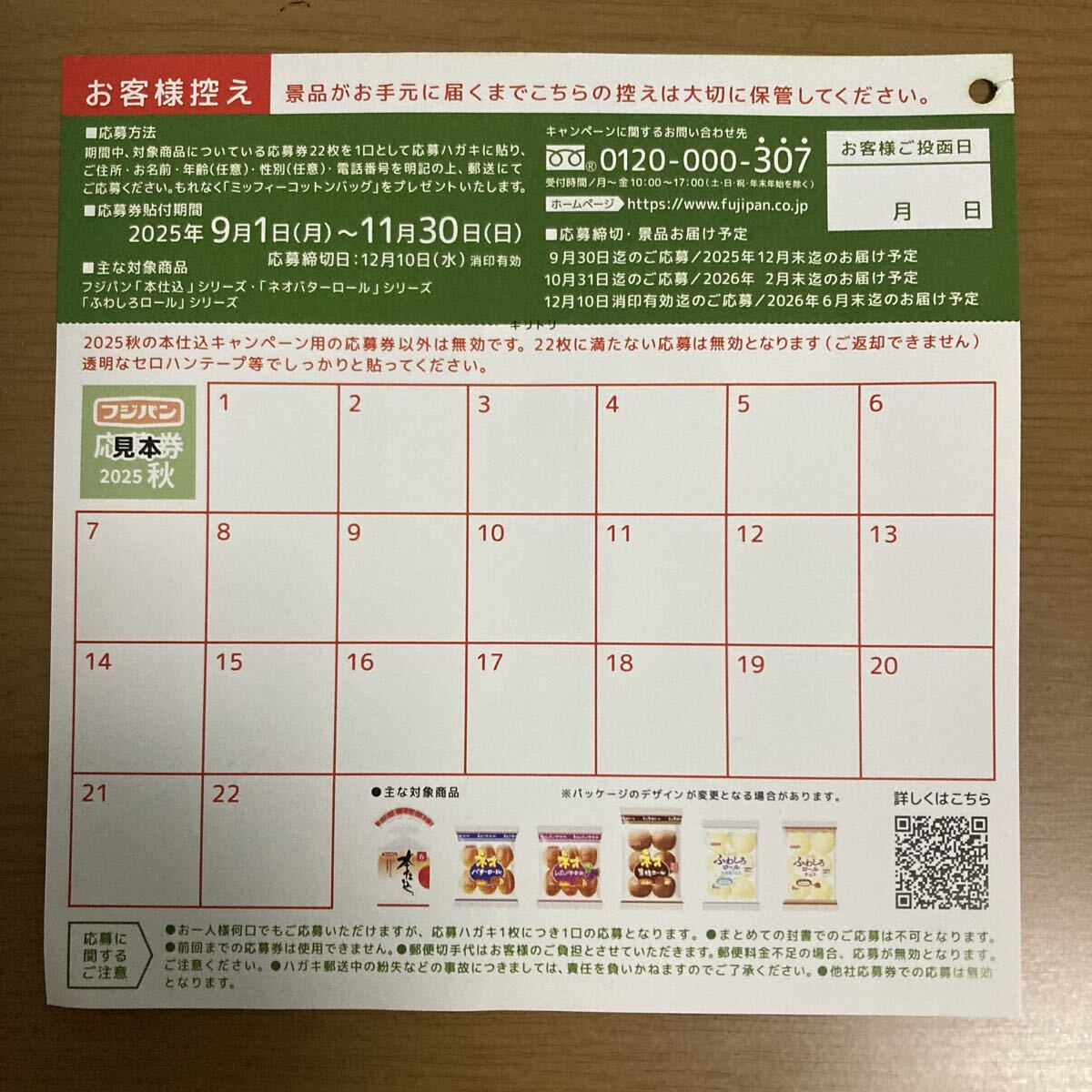 フジパン 秋の本仕込キャンペーン「ミッフィーコットンバッグ 応募券12枚