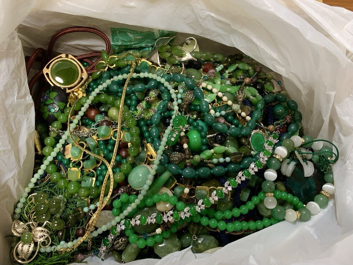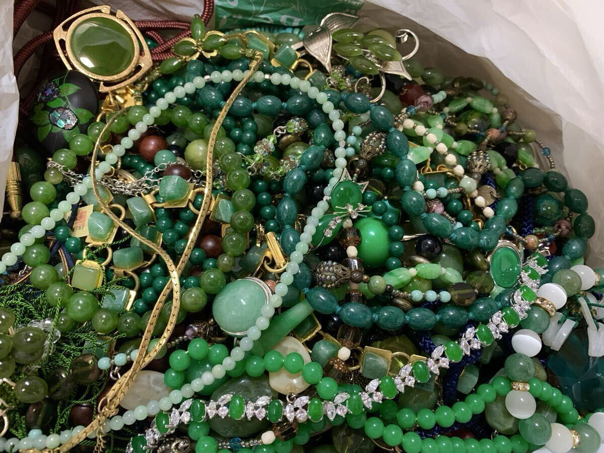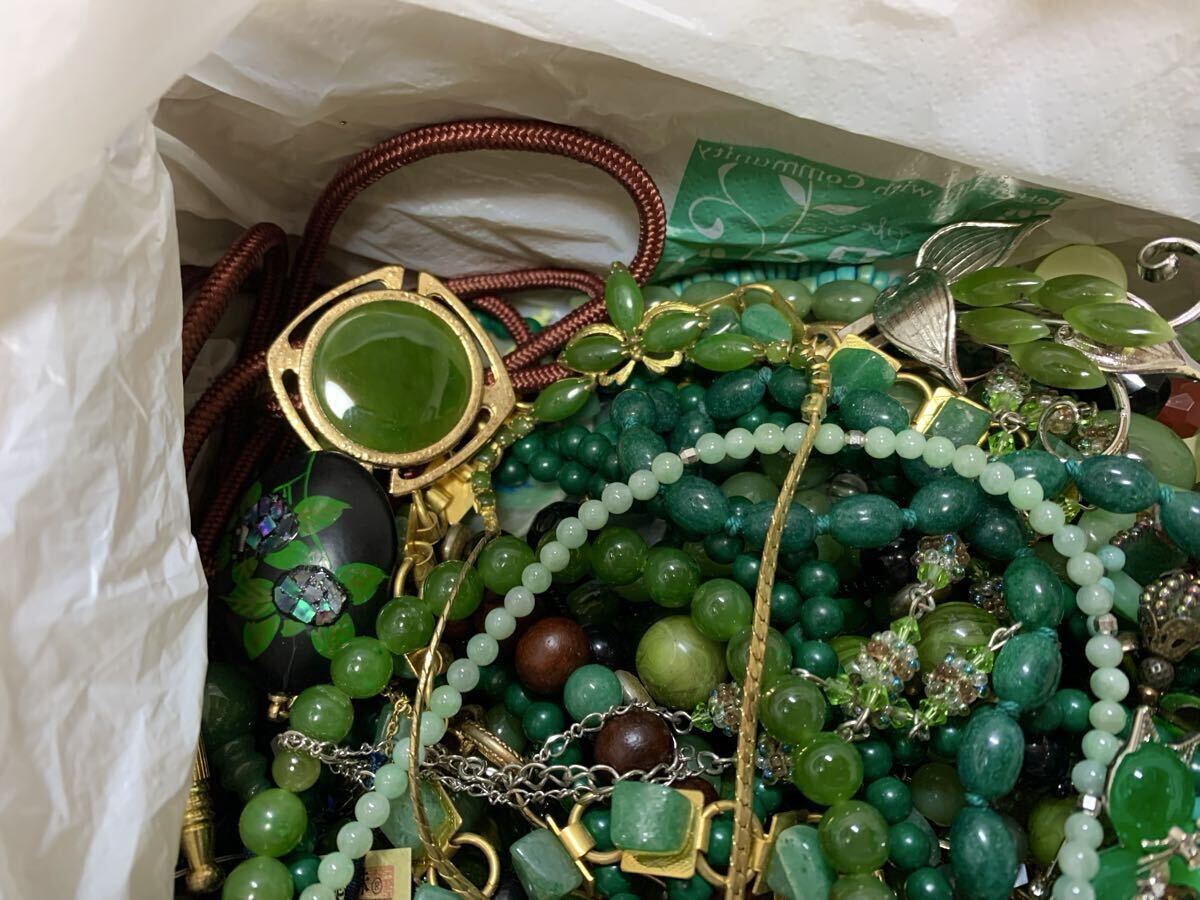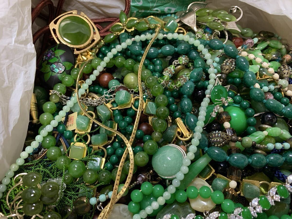 アクセサリー 2504g 大量 翡翠 ヒスイ 緑石 天然石 カラーストーン ラインストーン ガラス 緑系特殊素材色々 ヴィンテージ まとめ セット