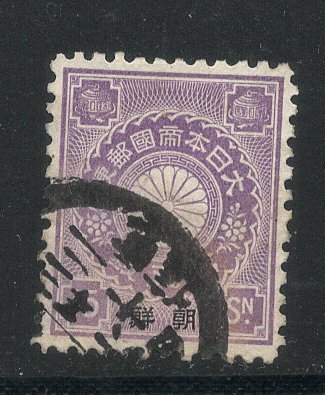 (KK-21-1) 菊切手【朝鮮加刷】、15銭、使用済、丸一、裏極小薄みあり