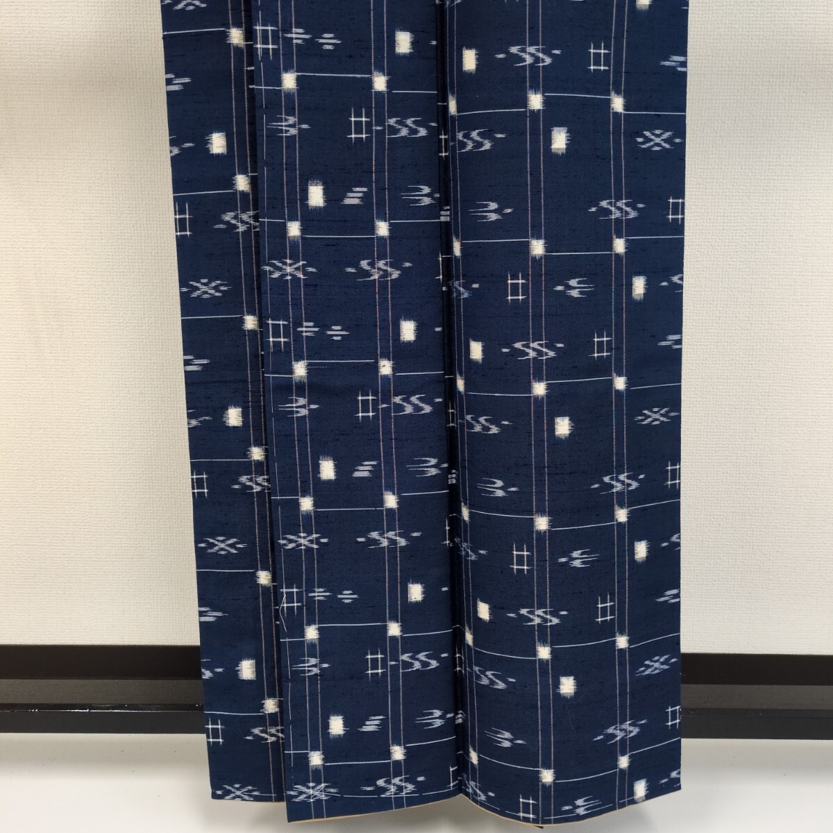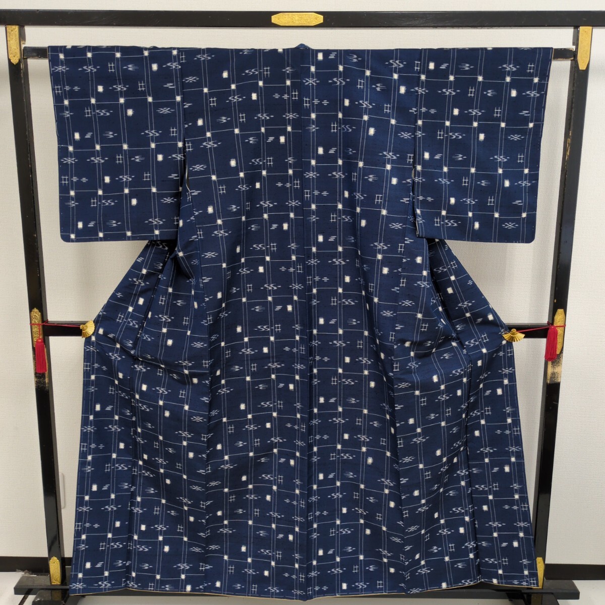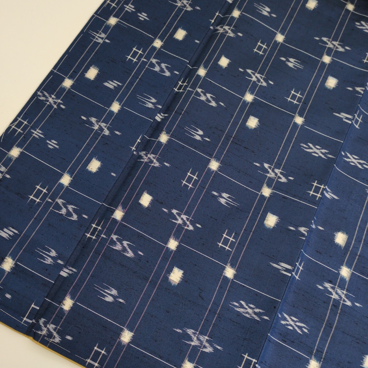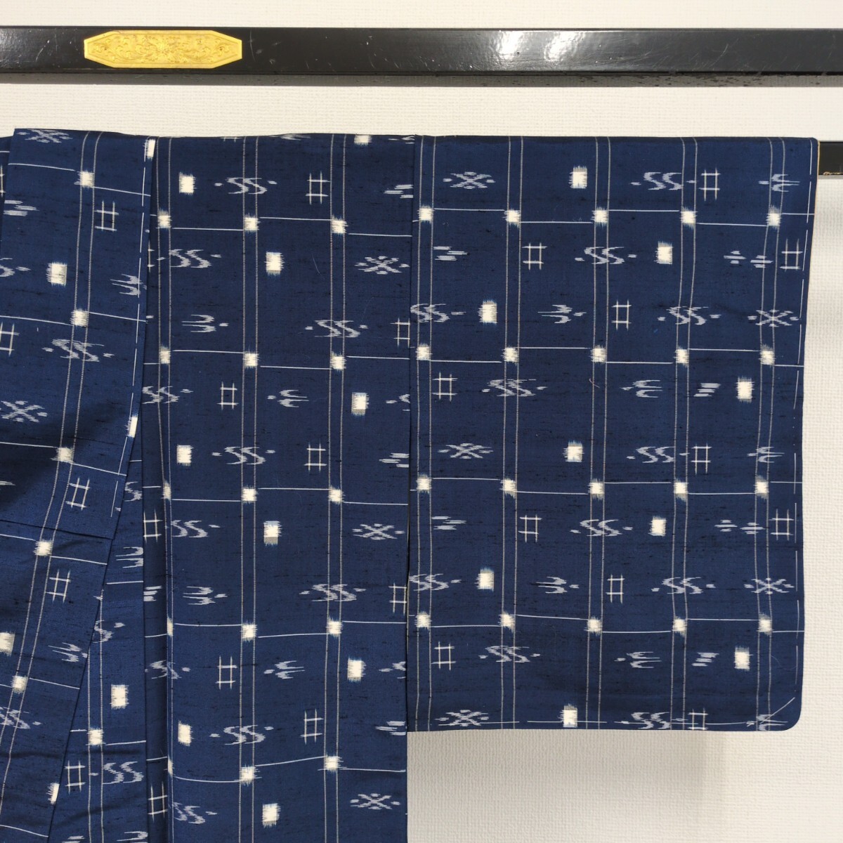【楓】藍染め 琉球絣 紬 正絹 素敵なデザイン 袷 着物 KK-1834