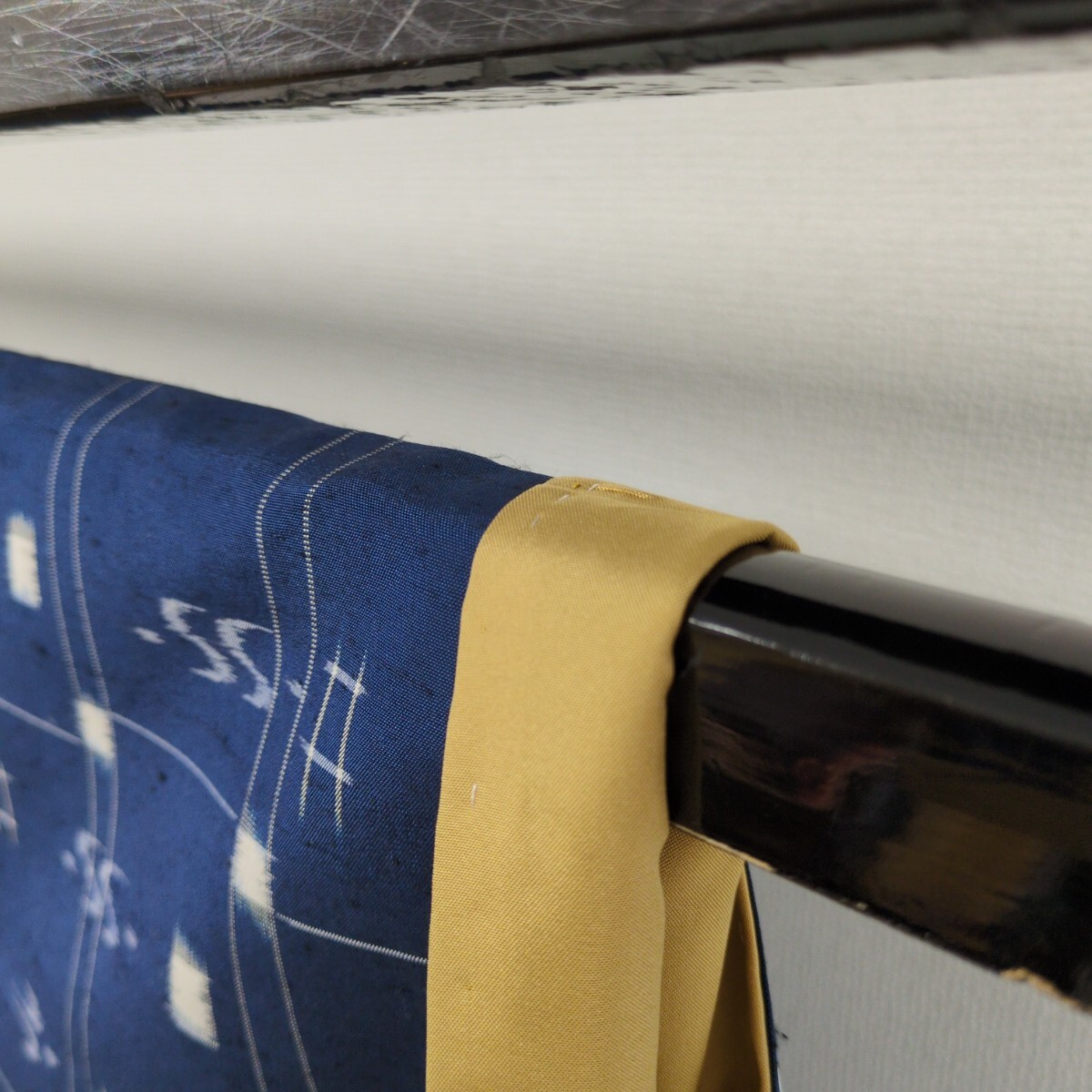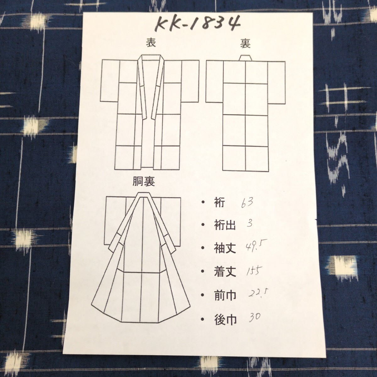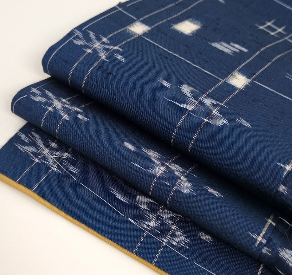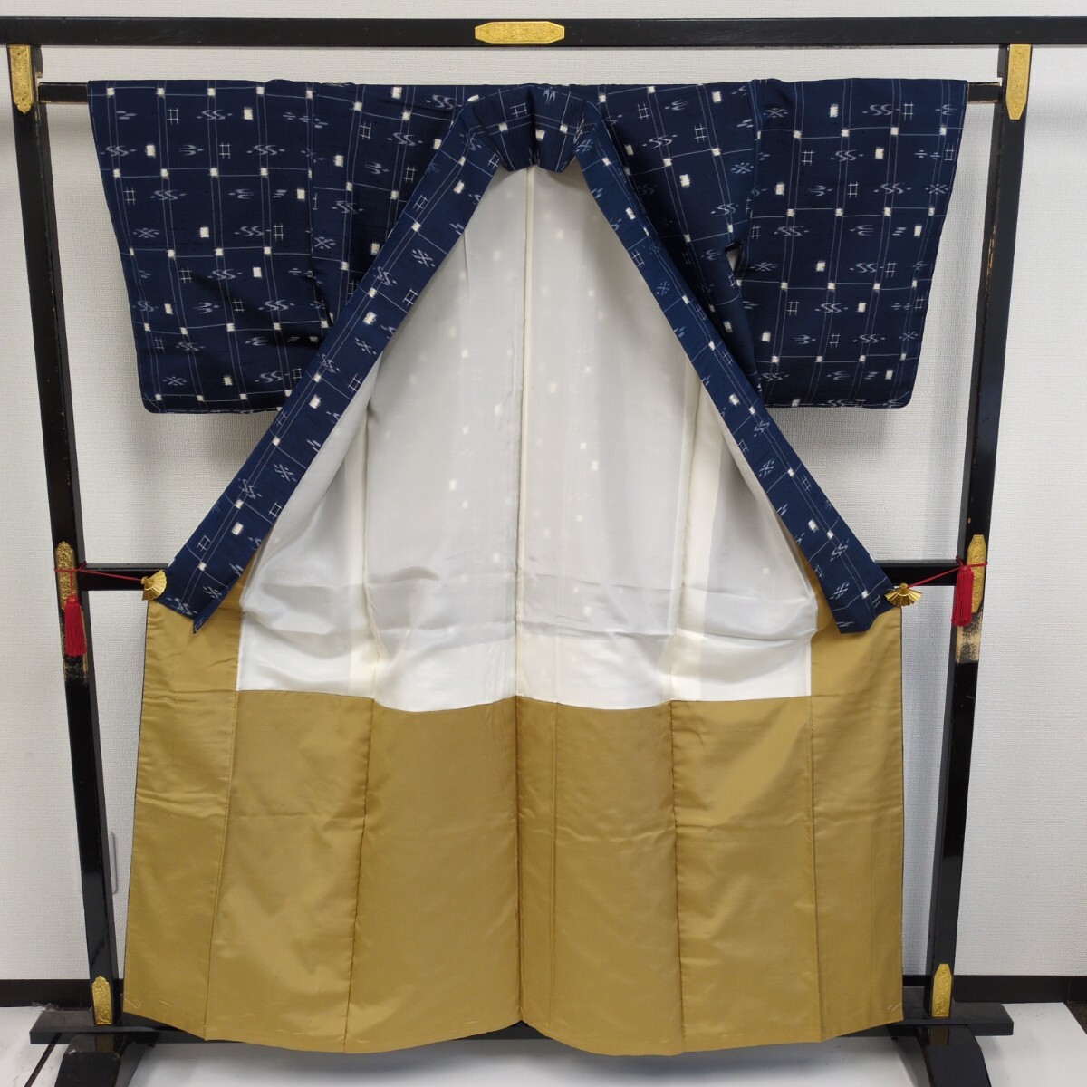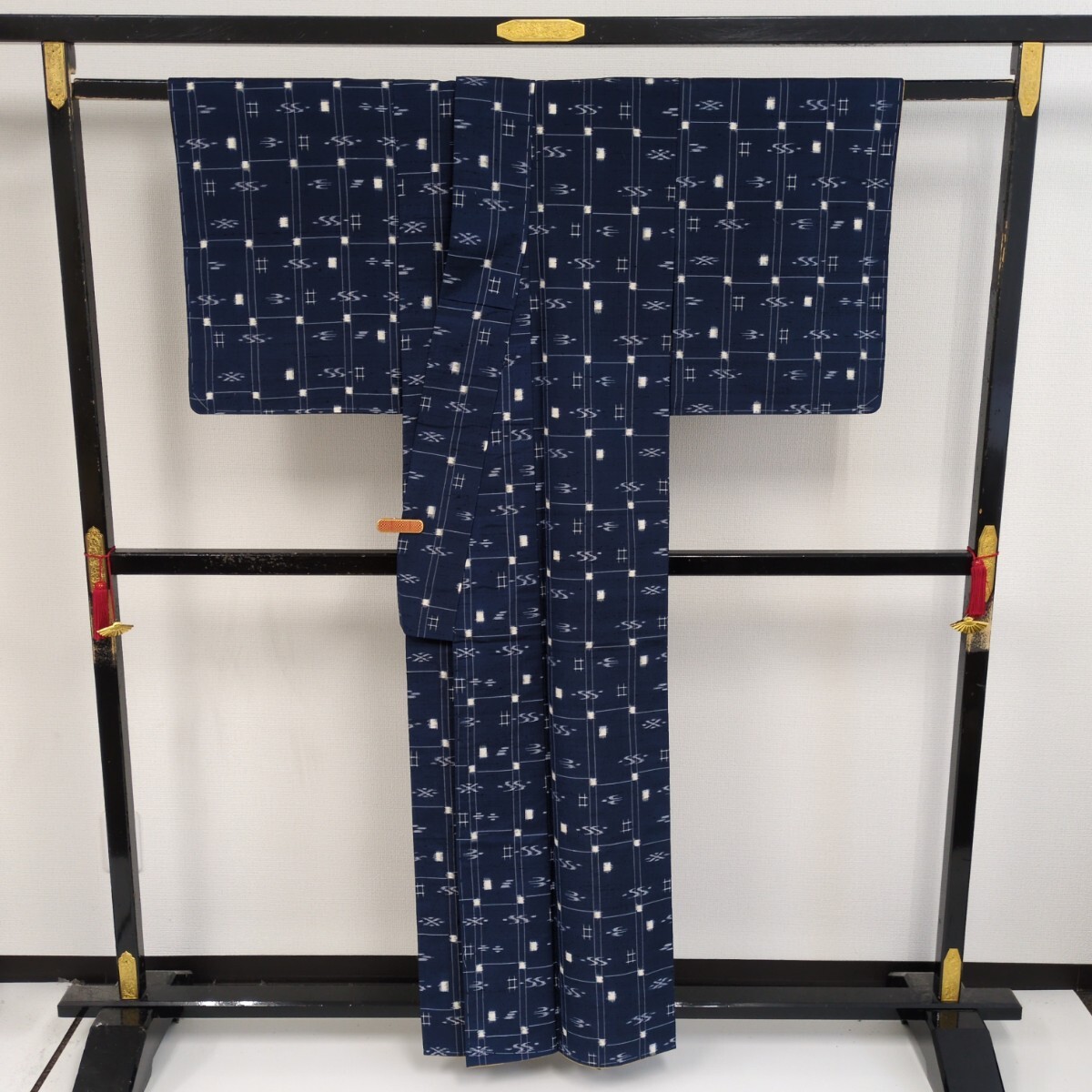 【楓】藍染め 琉球絣 紬 正絹 素敵なデザイン 袷 着物 KK-1834