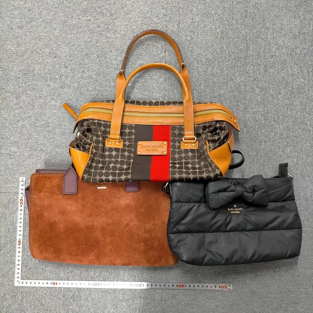 状態備考 : kate spade(ケイトスペード)のロゴプレート付きボストンバッグとリボンデザインのナイロンポーチに、ブラウン系スエード調トートバッグを加えた3点セットで、どれも秋冬コーデにも合わせやすい落ち着いたカラーと可愛らしいディテールが魅力のアイテムとなっており、全体的に角スレや薄汚れなど中古品相応の使用感はあるもののぱっと見て大きく目立つダメージは少なくまだまだ普段のお出かけに気持ちよくお使いいただけるコンディションだと思いますので、状態や色味・サイズ感、ロゴ部分の様子などは写真をご確認のうえ中古品にご理解のある方のみご入札ください。