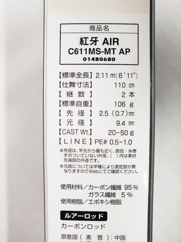 J164H 122 DAIWA ダイワ 紅牙 AIR C611MS-MT AP 中古品
