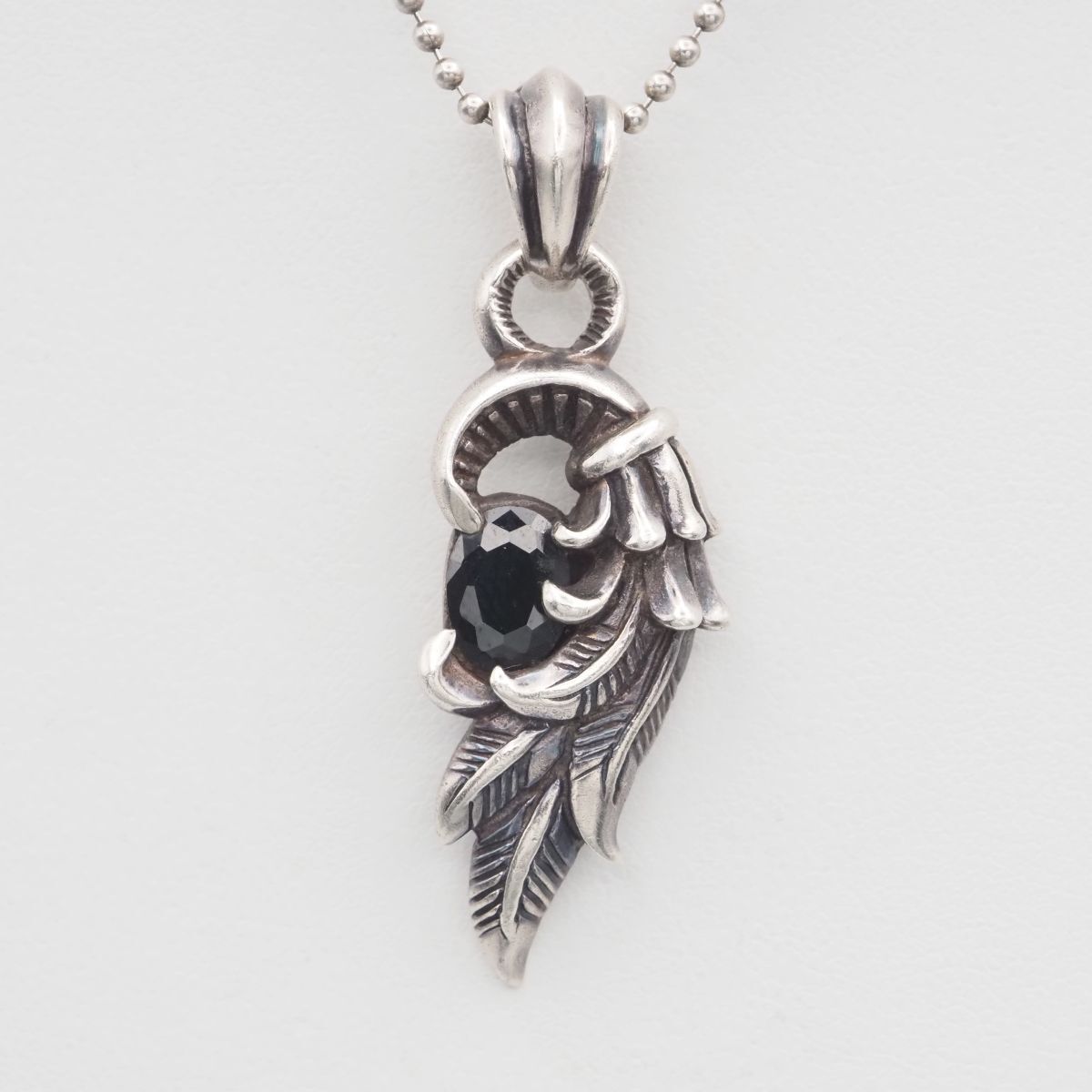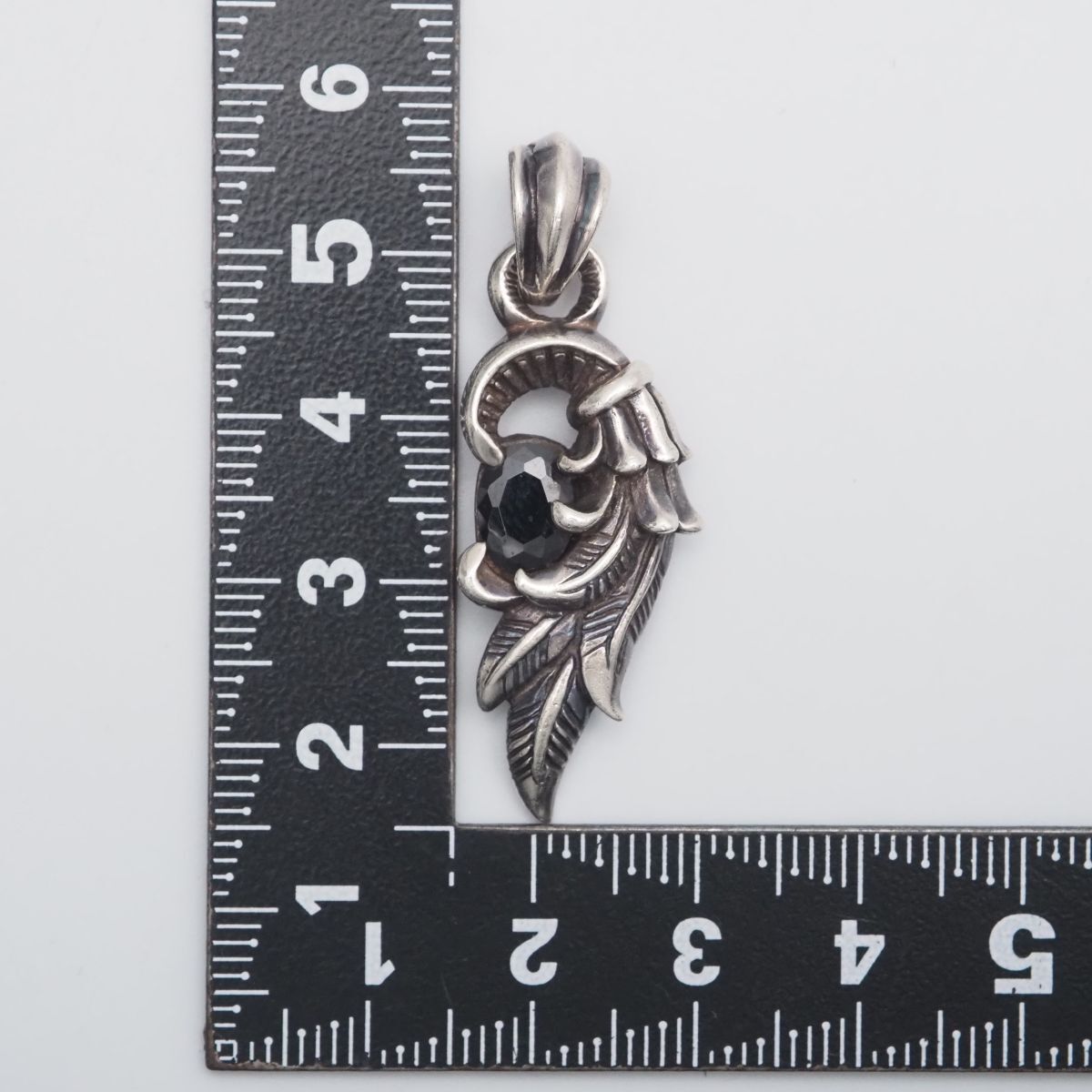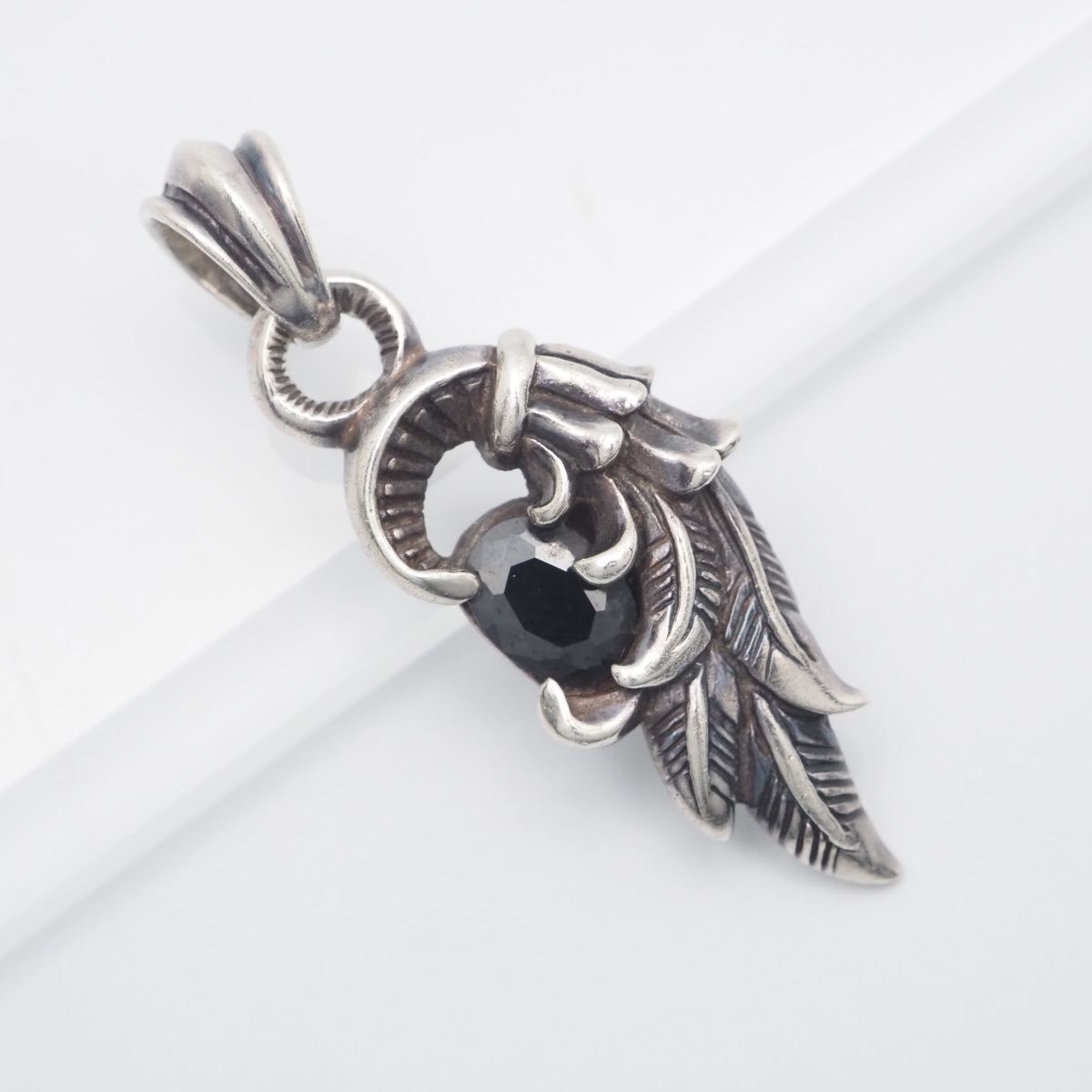 H380 オニキス 925刻印 ペンダント トップ 羽 フェザー デザイン シルバー チャーム ヘッド ヴィンテージ