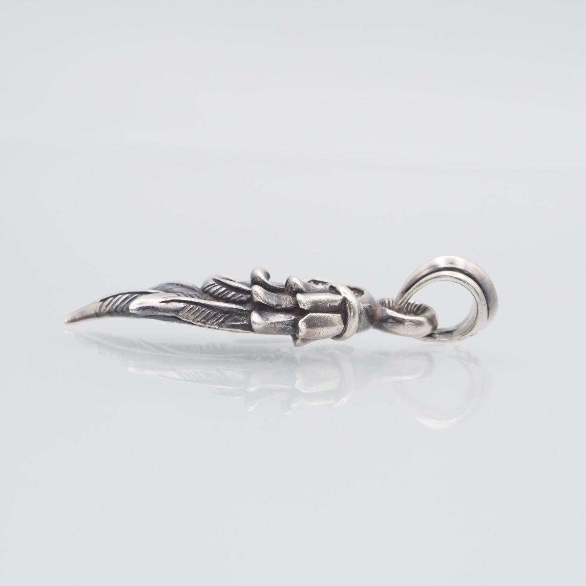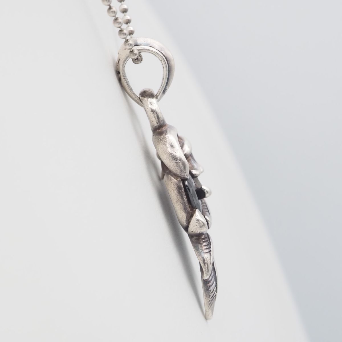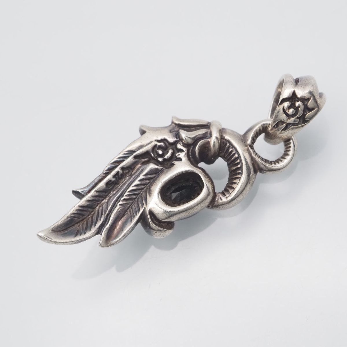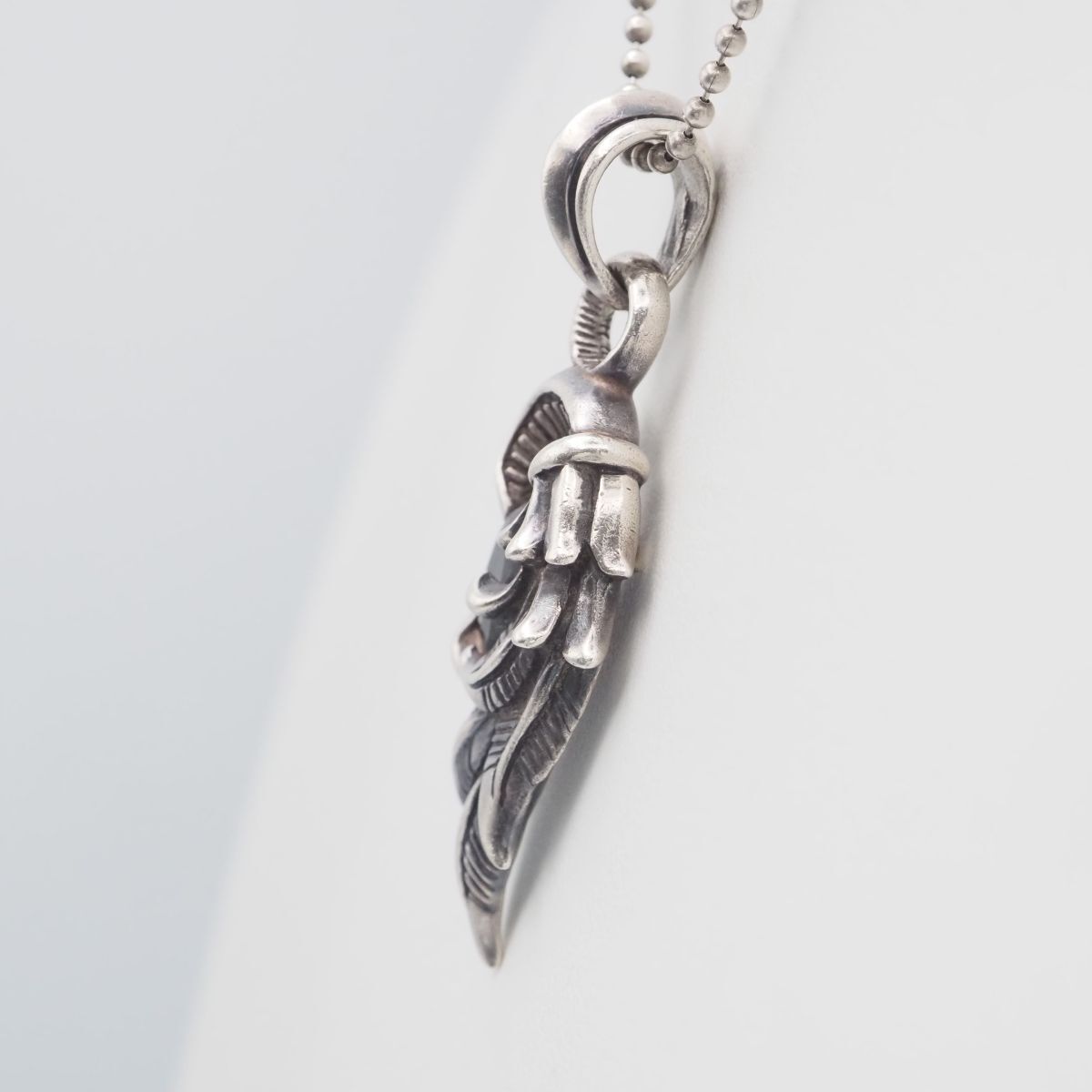 H380 オニキス 925刻印 ペンダント トップ 羽 フェザー デザイン シルバー チャーム ヘッド ヴィンテージ