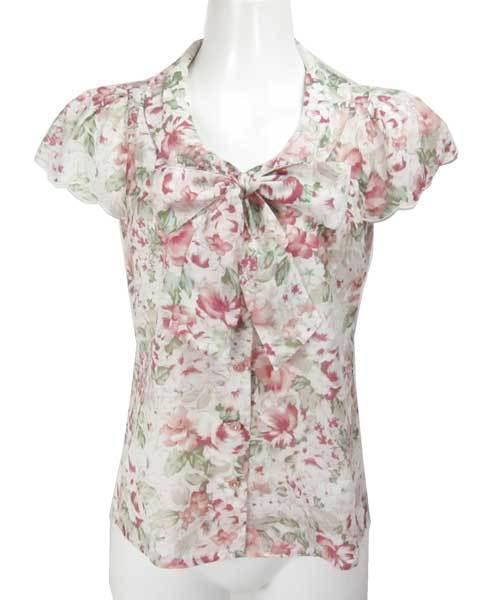 | 商品名 | 白 赤 花柄 半袖 ブラウス 36 |
