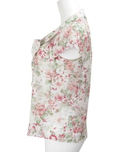 | プライドグライド 白 赤 花柄 半袖 ブラウス 36 |