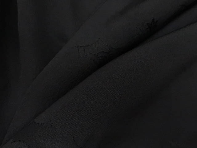 リサイクル商品のため、所々汚れがございますが着用可能なお品です。 地色は黒です。 1枚目の画像が近いお色かと思われます。 素材は正絹です。 |