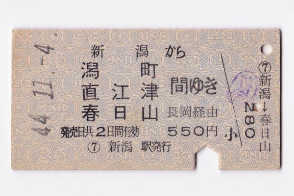 ●国鉄●【 新潟から潟町 直江津 春日山 間ゆき 長岡経由 550円 】A型券 昭和44年 信越本線 新潟駅発行【03145