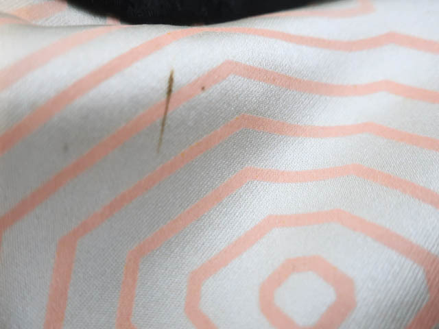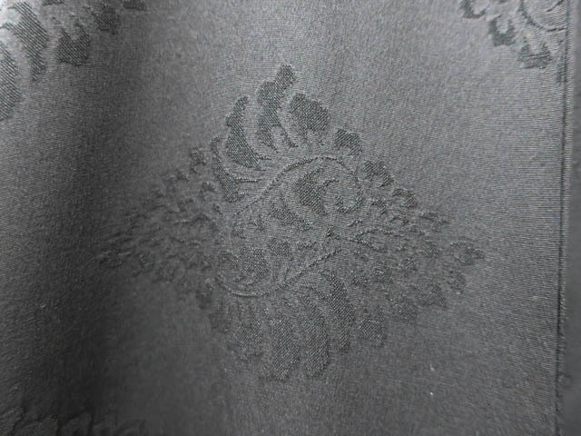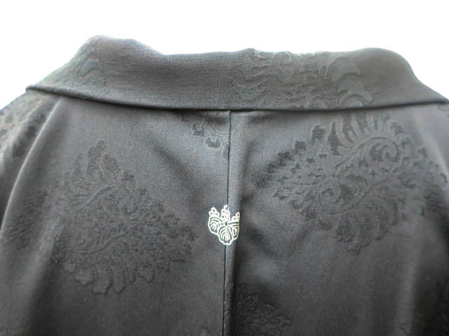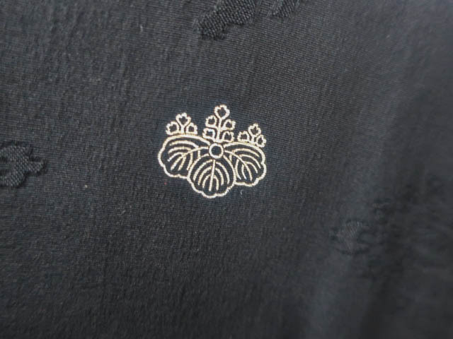 リサイクル商品のため、左袖に薄汚れと羽裏に薄しみがございますが着用可能なお品です。 地色は 黒 です。 1枚目の画像が近いお色かと思われます。 素材は正絹です。 |