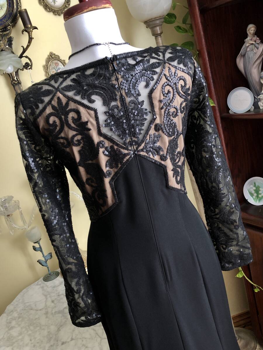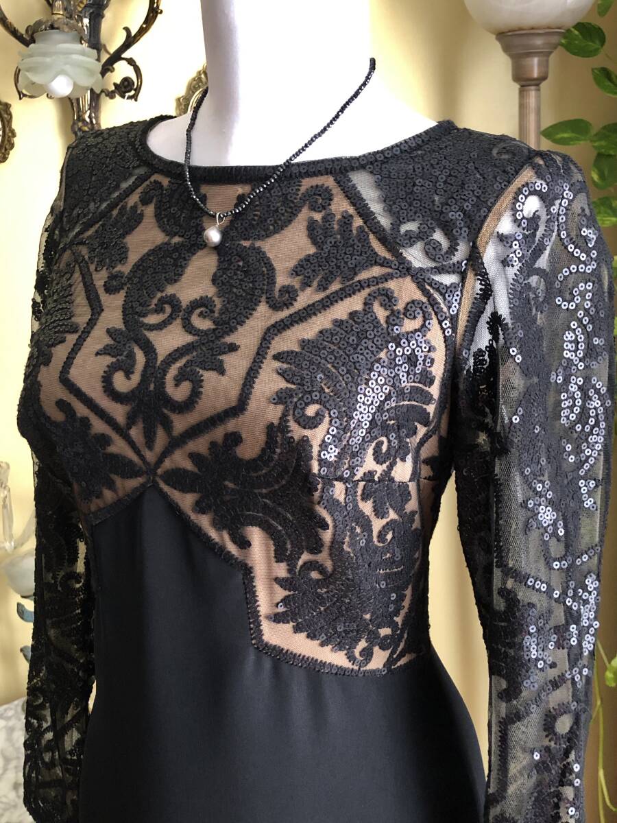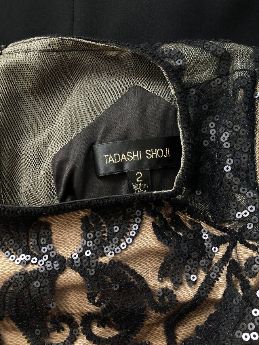 | 【状態】中古 *前ネックに小さな傷があります。(お写真参照) 着用時目立たないと思いますが、ご了承願います。 その他は大変綺麗なお品です。 【ブランド】TADASHI SHOJI 【サイズ】表示サイズ/us(アメリカ)2 日本対応サイズ目安/ 9号Sサイズぐらい *個人差がございます。必ず採寸をご参照ください。 【採寸】平置き採寸です。 肩幅38㎝、身幅44㎝、ウエスト37cm、ヒップ49㎝、着丈後最長168cm、袖丈57㎝ 【カラー】黒 【素材】ナイロン40%、コットン30%、ポリエステル30% スカート/ポリエステル91%、スパンデックス9% 【裏地の素材】ポリエステル100% 【着脱】後ファスナー
