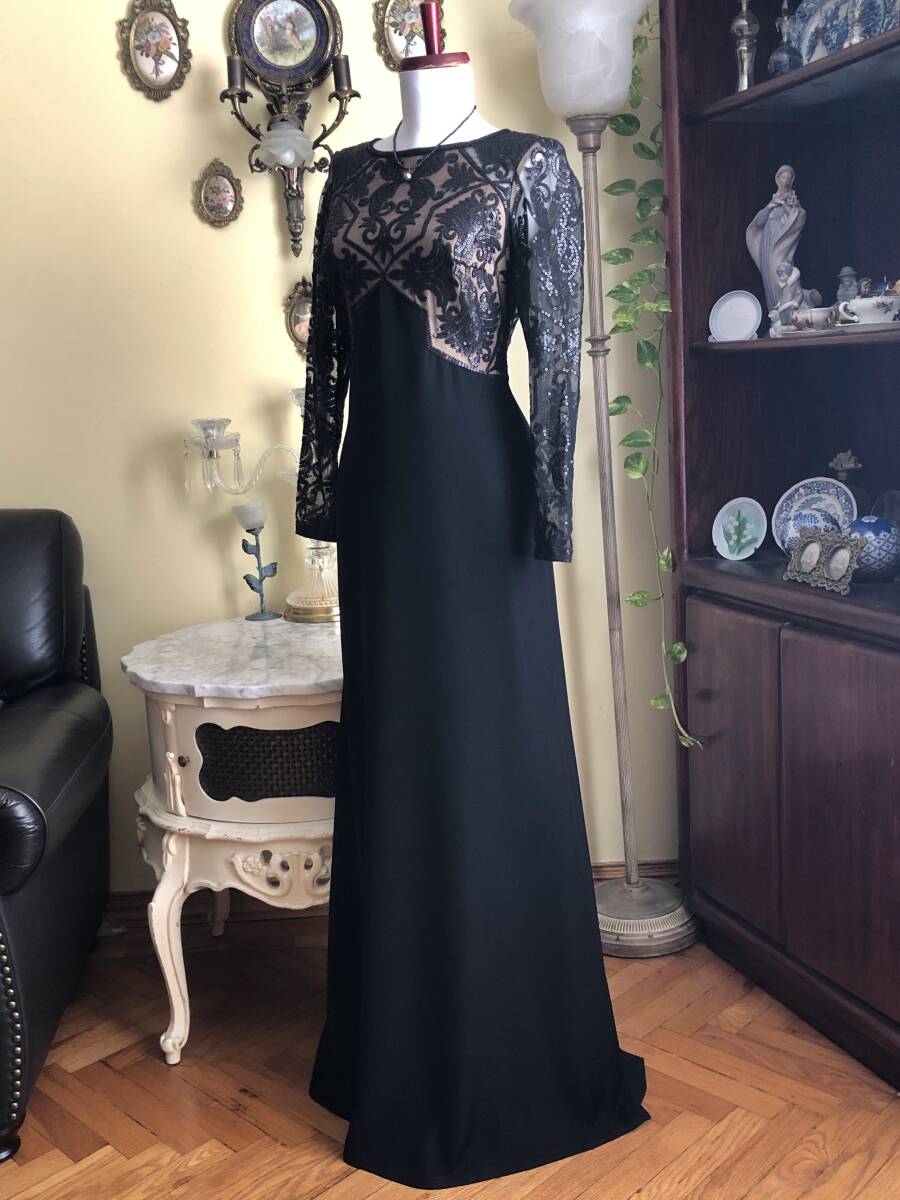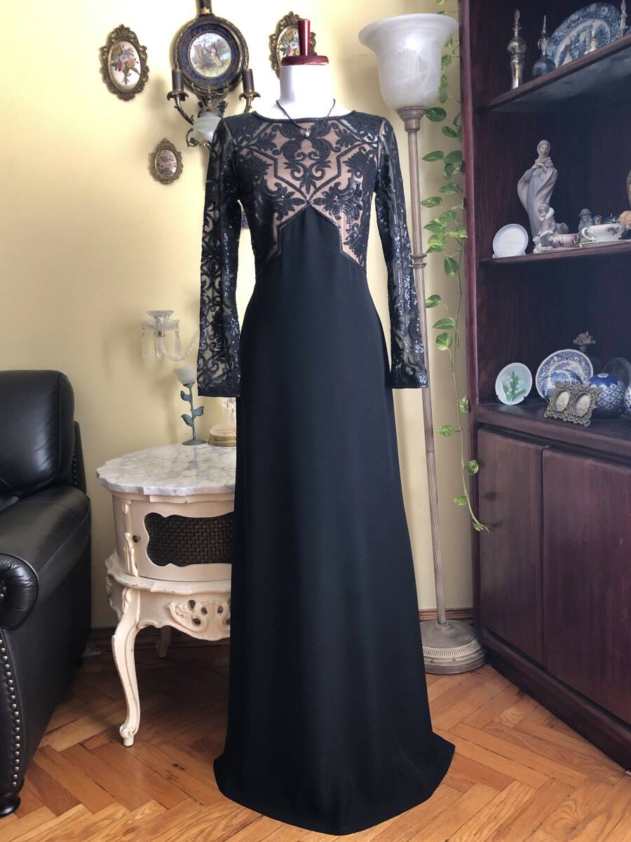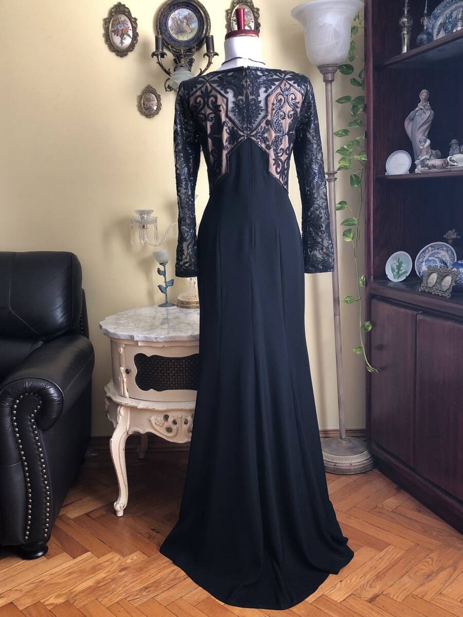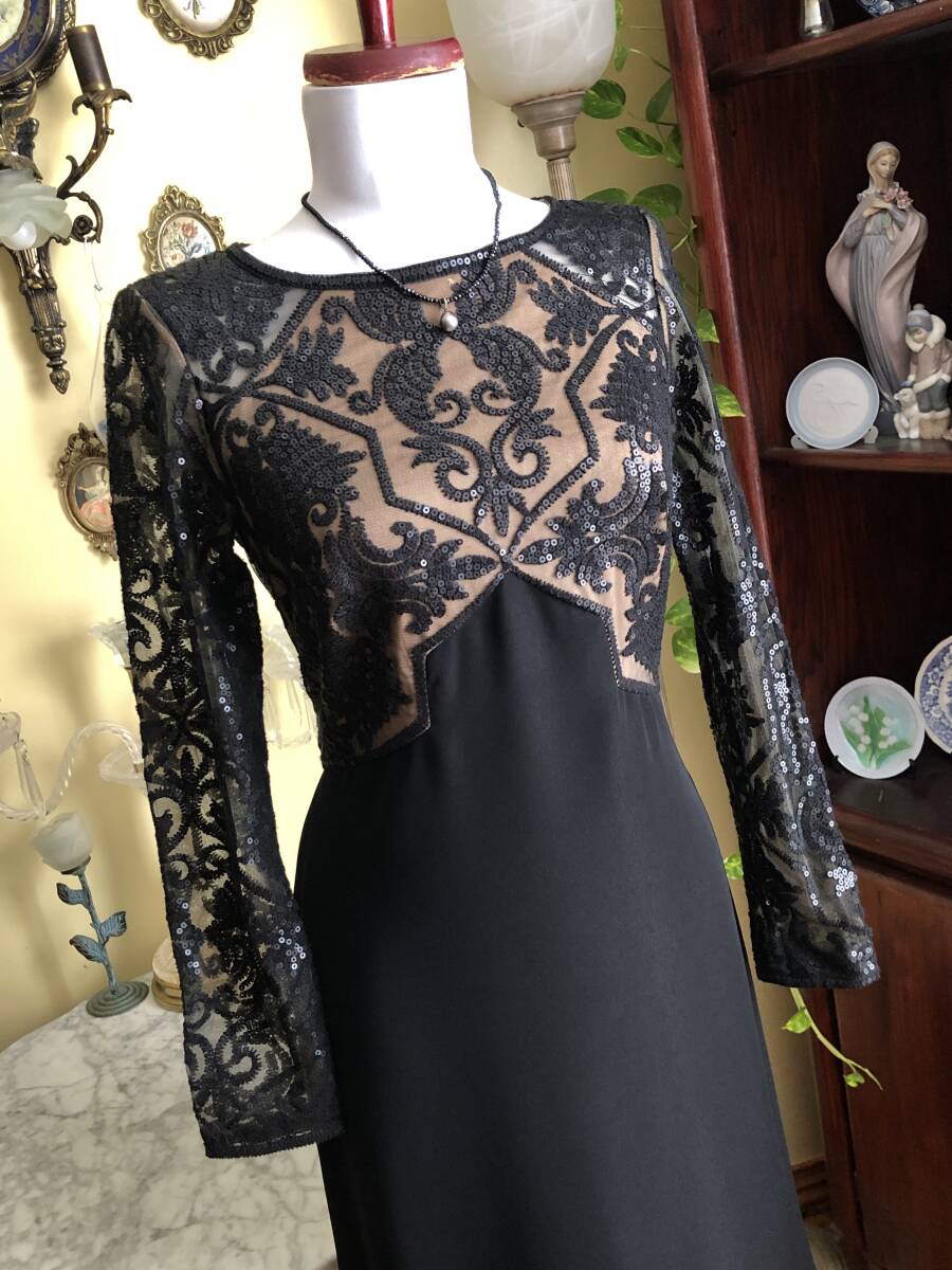 | 【状態】中古 *前ネックに小さな傷があります。(お写真参照) 着用時目立たないと思いますが、ご了承願います。 その他は大変綺麗なお品です。 【ブランド】TADASHI SHOJI 【サイズ】表示サイズ/us(アメリカ)2 日本対応サイズ目安/ 9号Sサイズぐらい *個人差がございます。必ず採寸をご参照ください。 【採寸】平置き採寸です。 肩幅38㎝、身幅44㎝、ウエスト37cm、ヒップ49㎝、着丈後最長168cm、袖丈57㎝ 【カラー】黒 【素材】ナイロン40%、コットン30%、ポリエステル30% スカート/ポリエステル91%、スパンデックス9% 【裏地の素材】ポリエステル100% 【着脱】後ファスナー