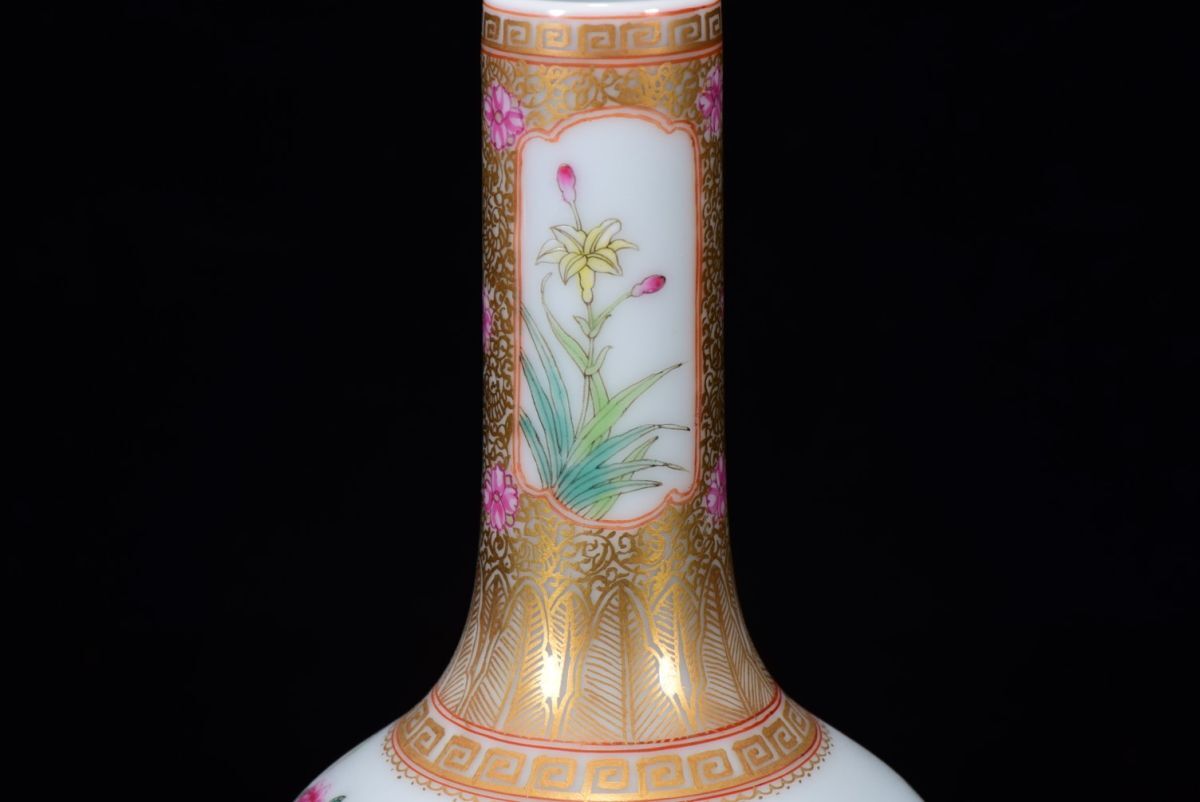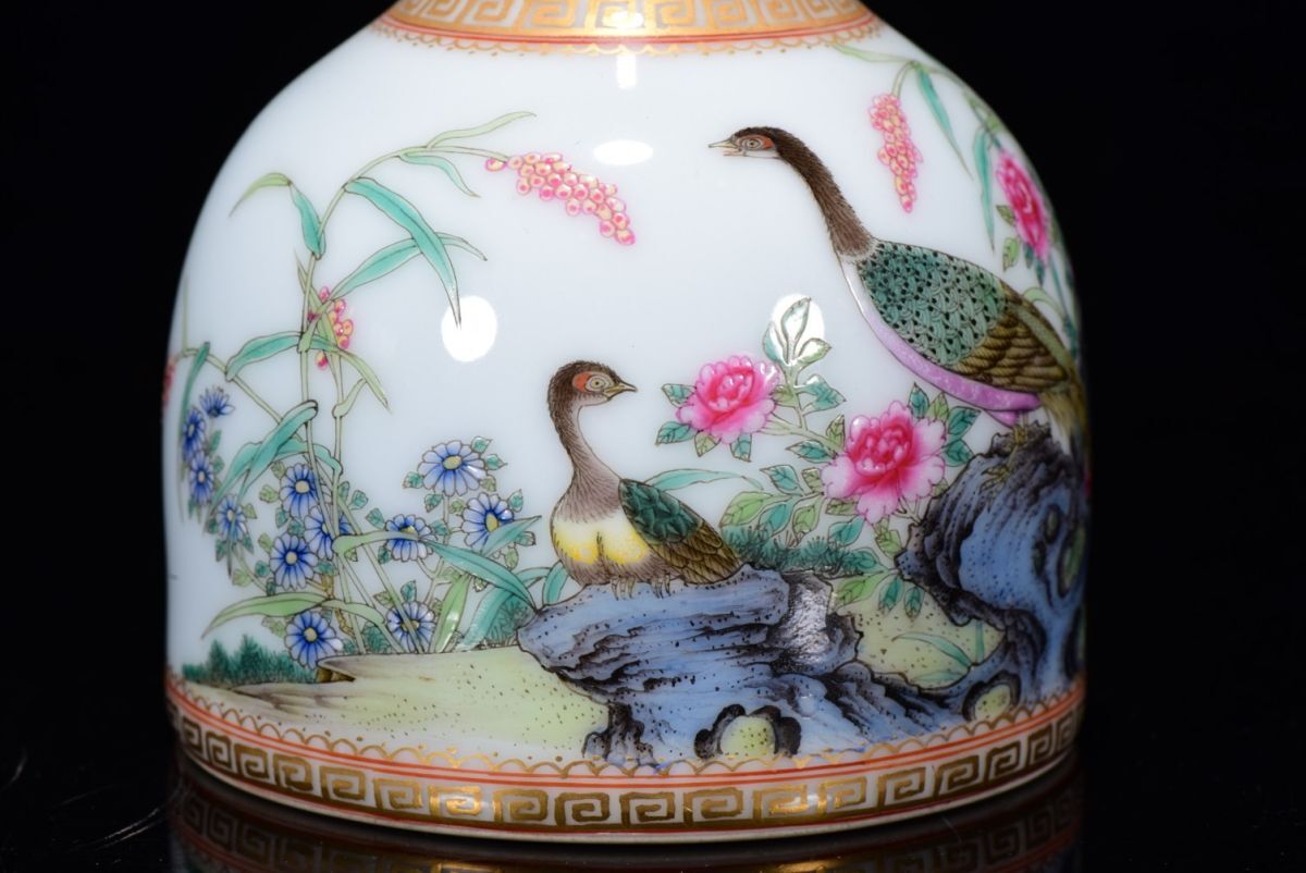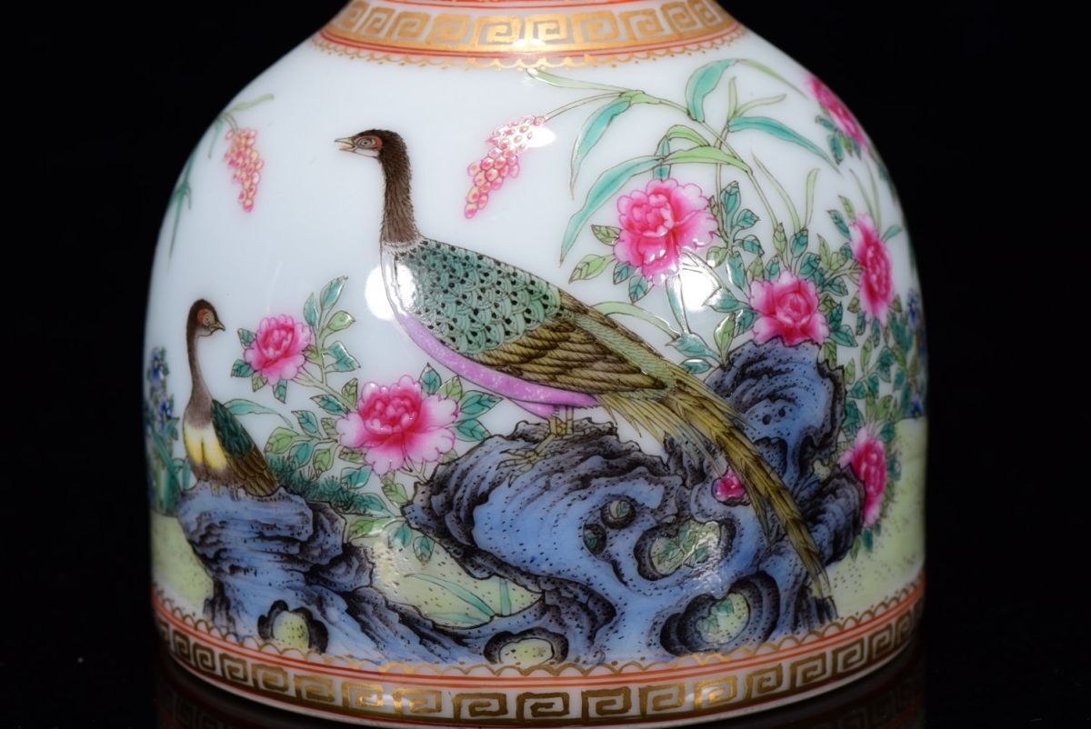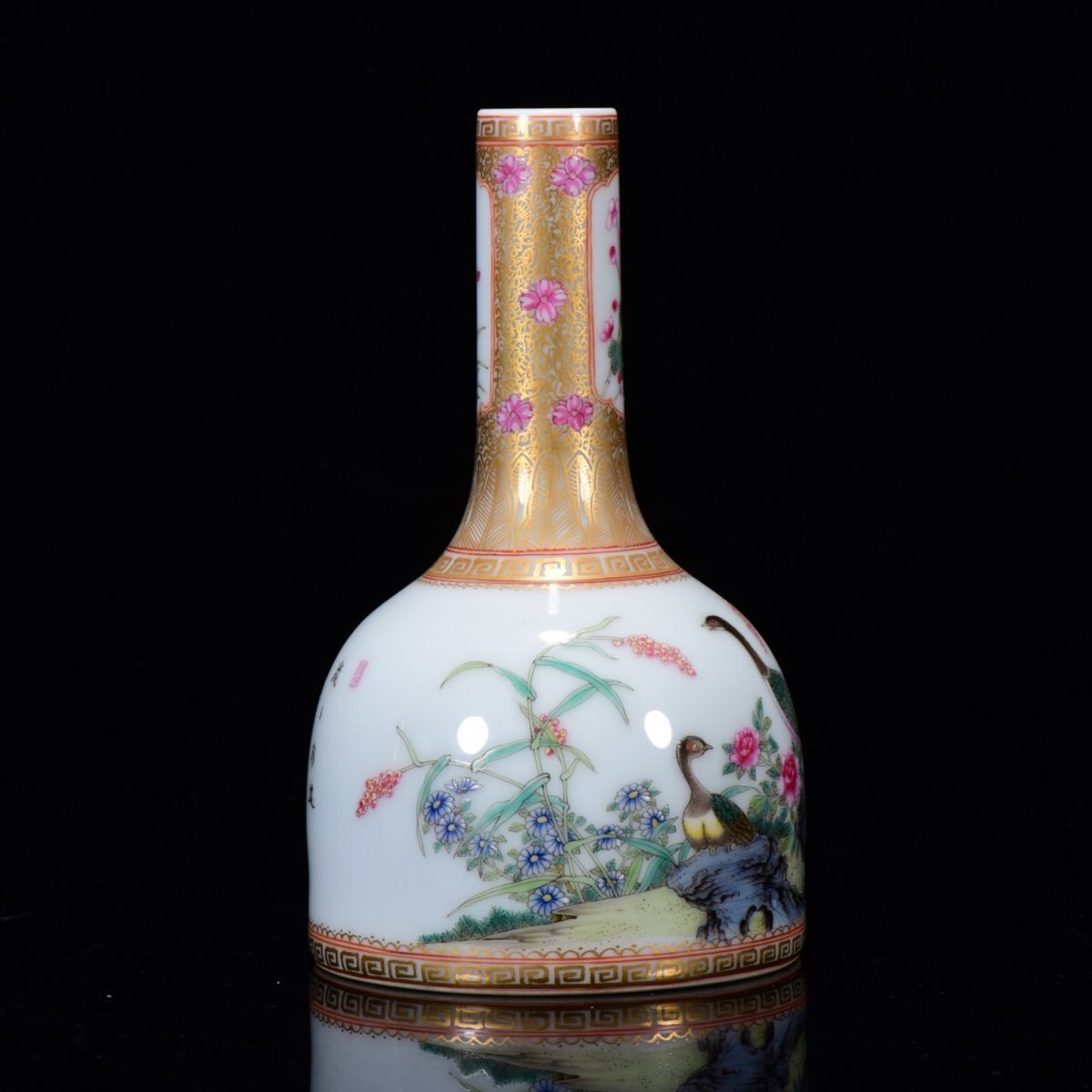 永し 清時代 雍正年製 粉彩描金 花鳥紋 搖鈴瓶 一対 古陶磁器 陶芸 皿 中国陶瓷器 唐瓷 置物擺件 古美術品 古賞物 収集 旧家蔵出 中国唐物