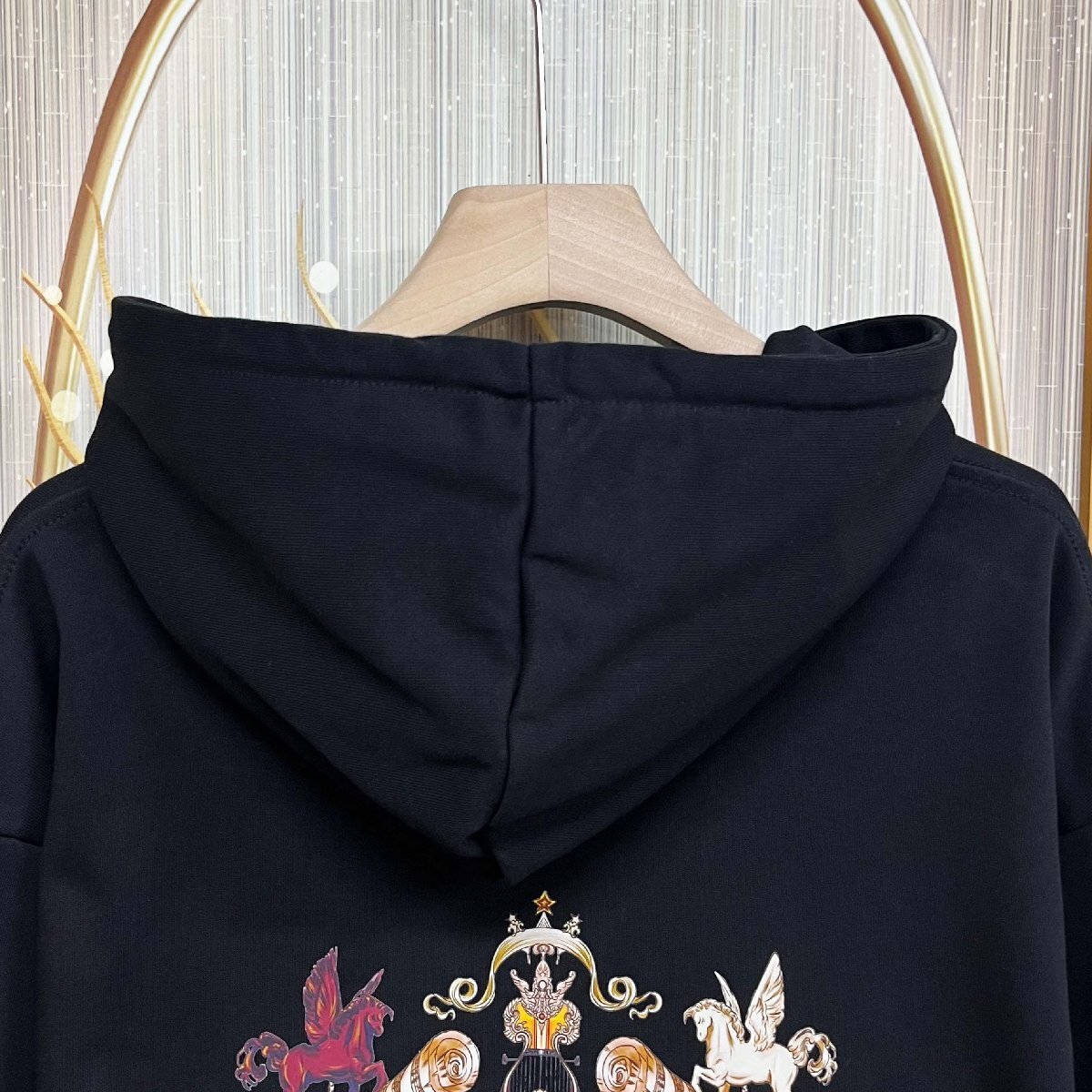 前後に施されたユニークなプリントデザインは、まるでアートピースのように存在感を放ち、一枚でコーディネートの主役として活躍します。シンプルでありながら、語れる一着。