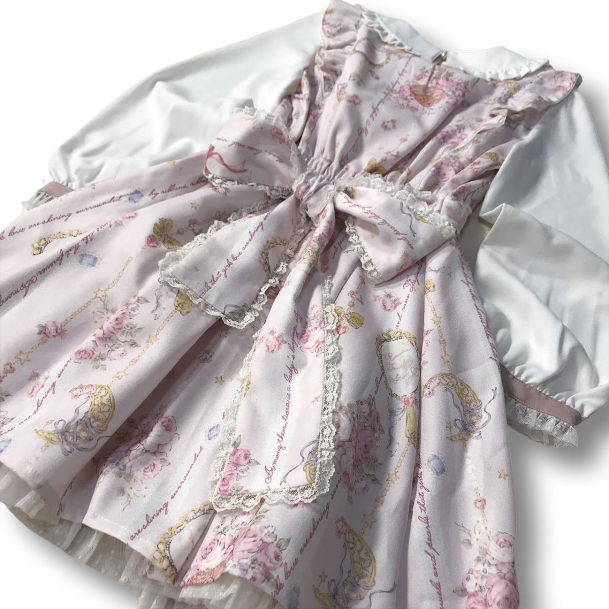 《良品◎》LIZ LISA リズリサ★レースデザイン*リボン*ミニワンピース*ホワイト/パステルピンク*サイズ0(LA2999)◆S80