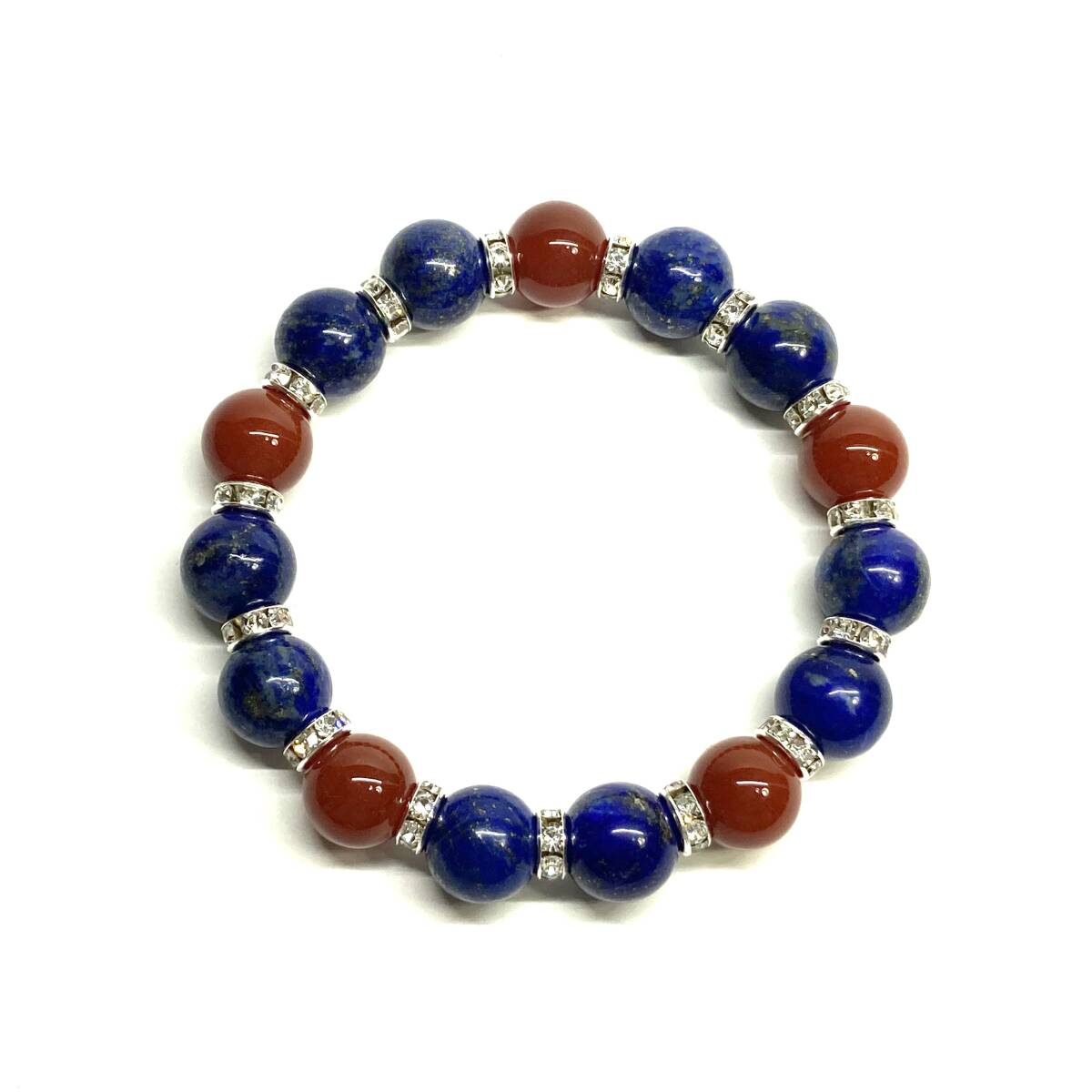 ラピスラズリ&赤瑪瑙 パワーストーン ブレスレット 天然石ブレス (シルバー) 12mm 幸運 開運 メンズ 男性