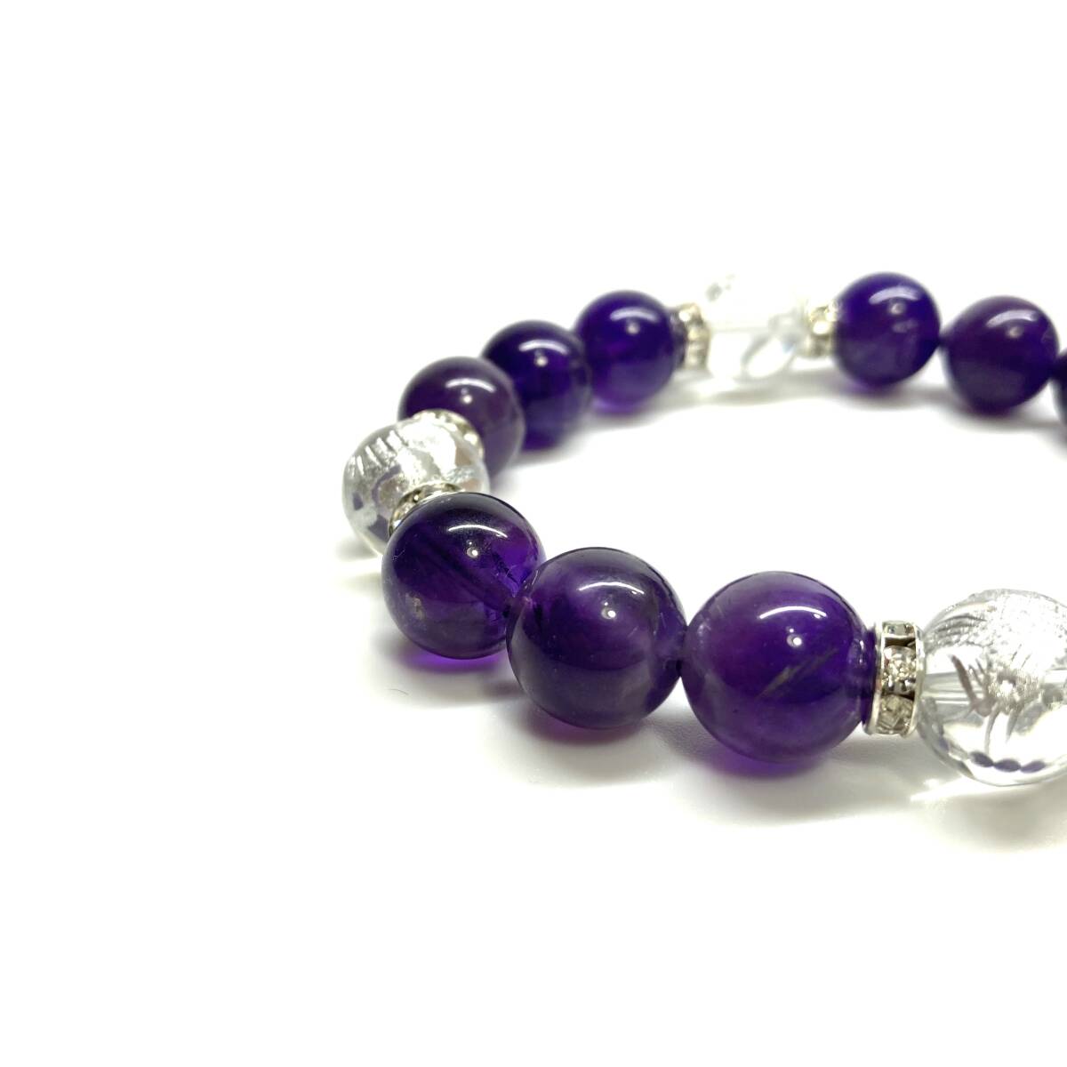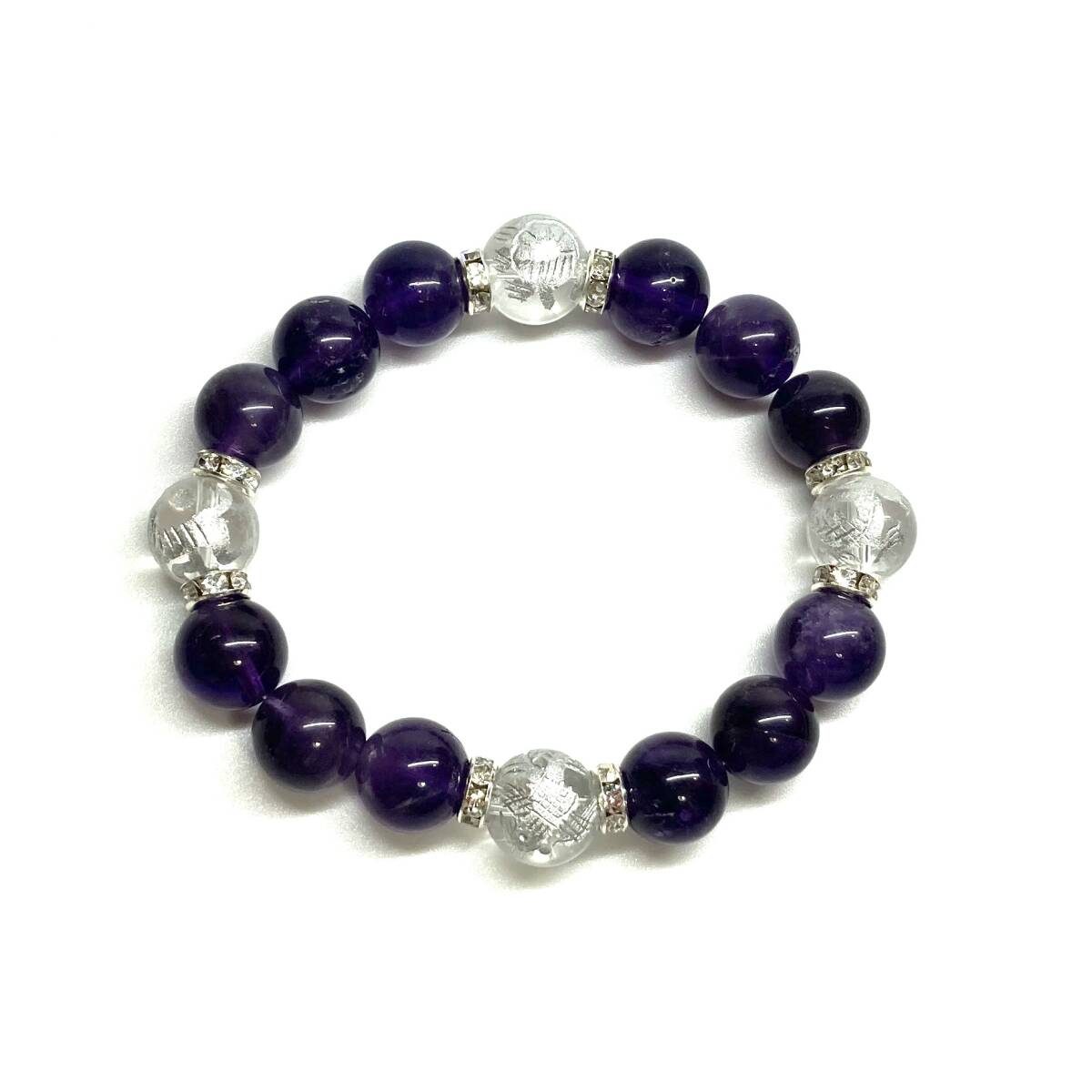 四神獣銀彫水晶×アメジスト 12mm パワーストーン ブレスレット天然石 青龍 白虎 玄武 朱雀 運気上昇 お守り 金運 四神獸 四神相応 S