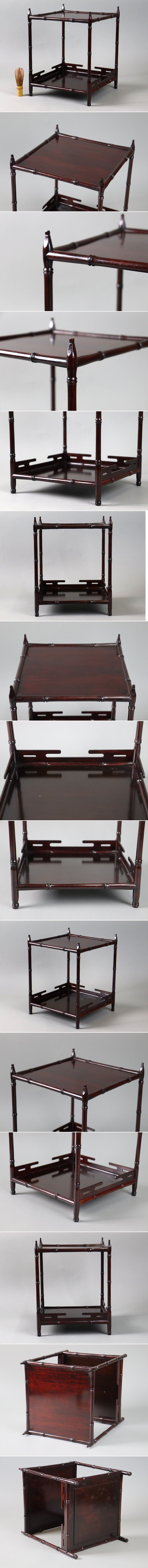【煎茶道具 唐木 紫檀 竹節彫刻 煎茶棚 高35,5cm】
