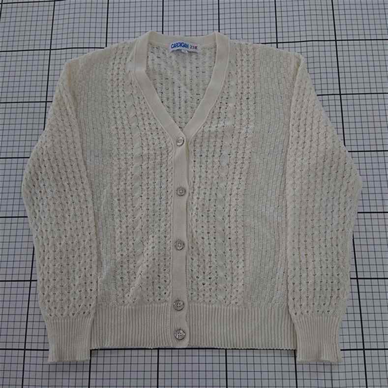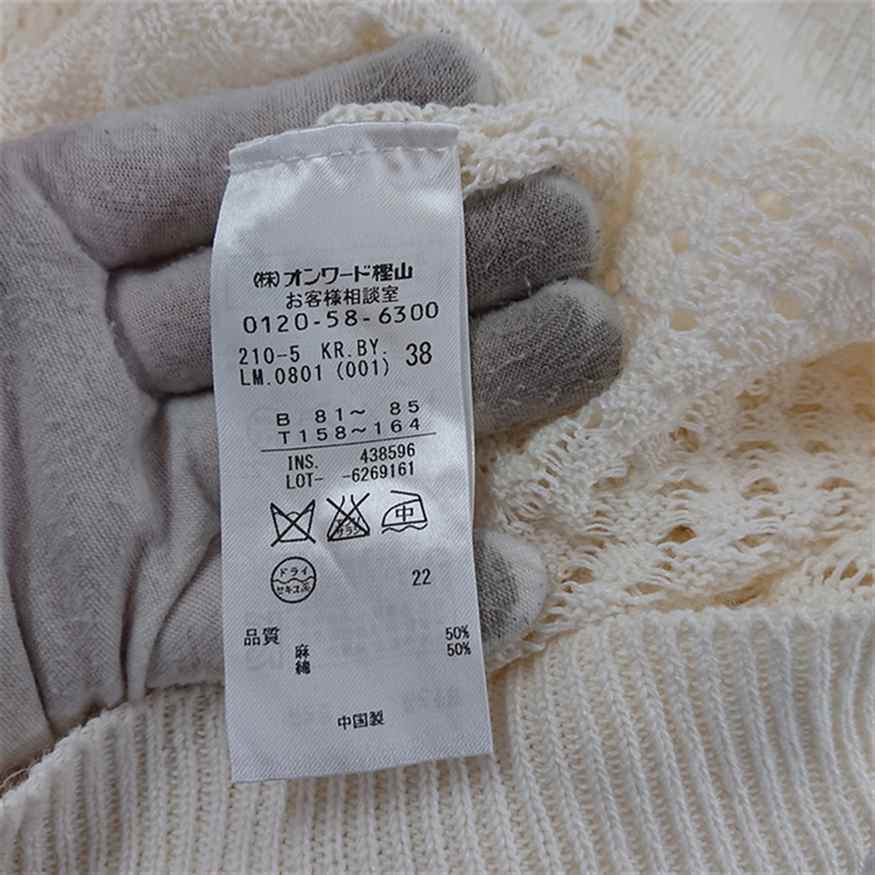 【23区】レディース 透かし編み ニットカーディガン アイボリー系 綿麻 サイズ38
