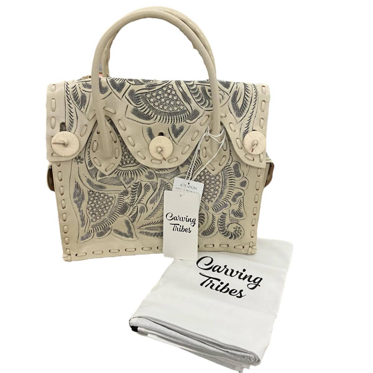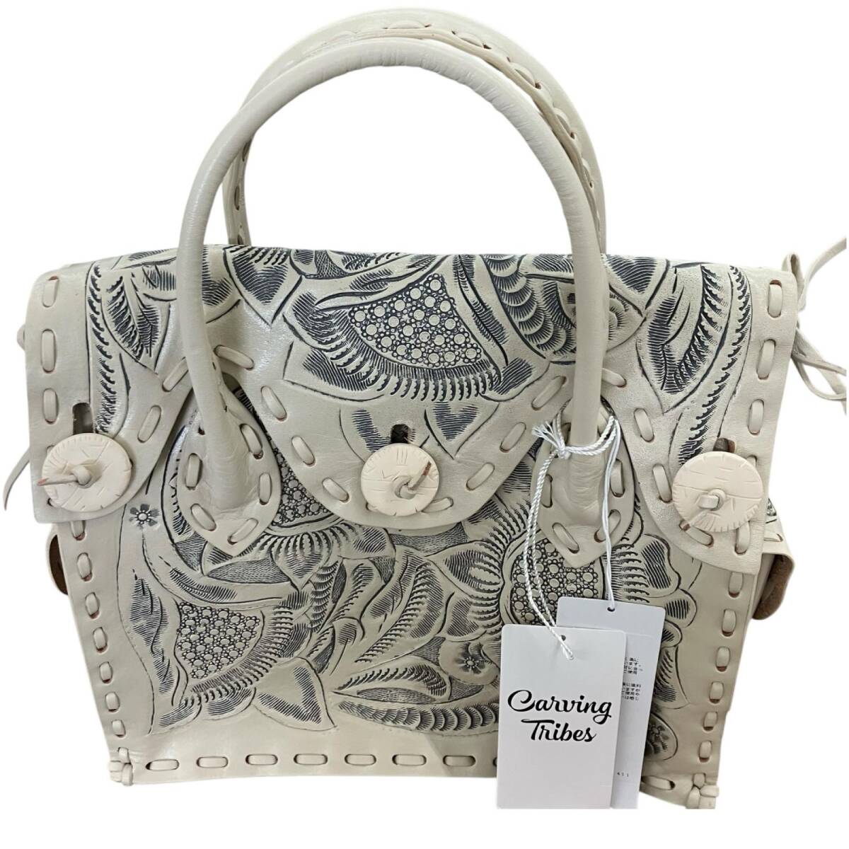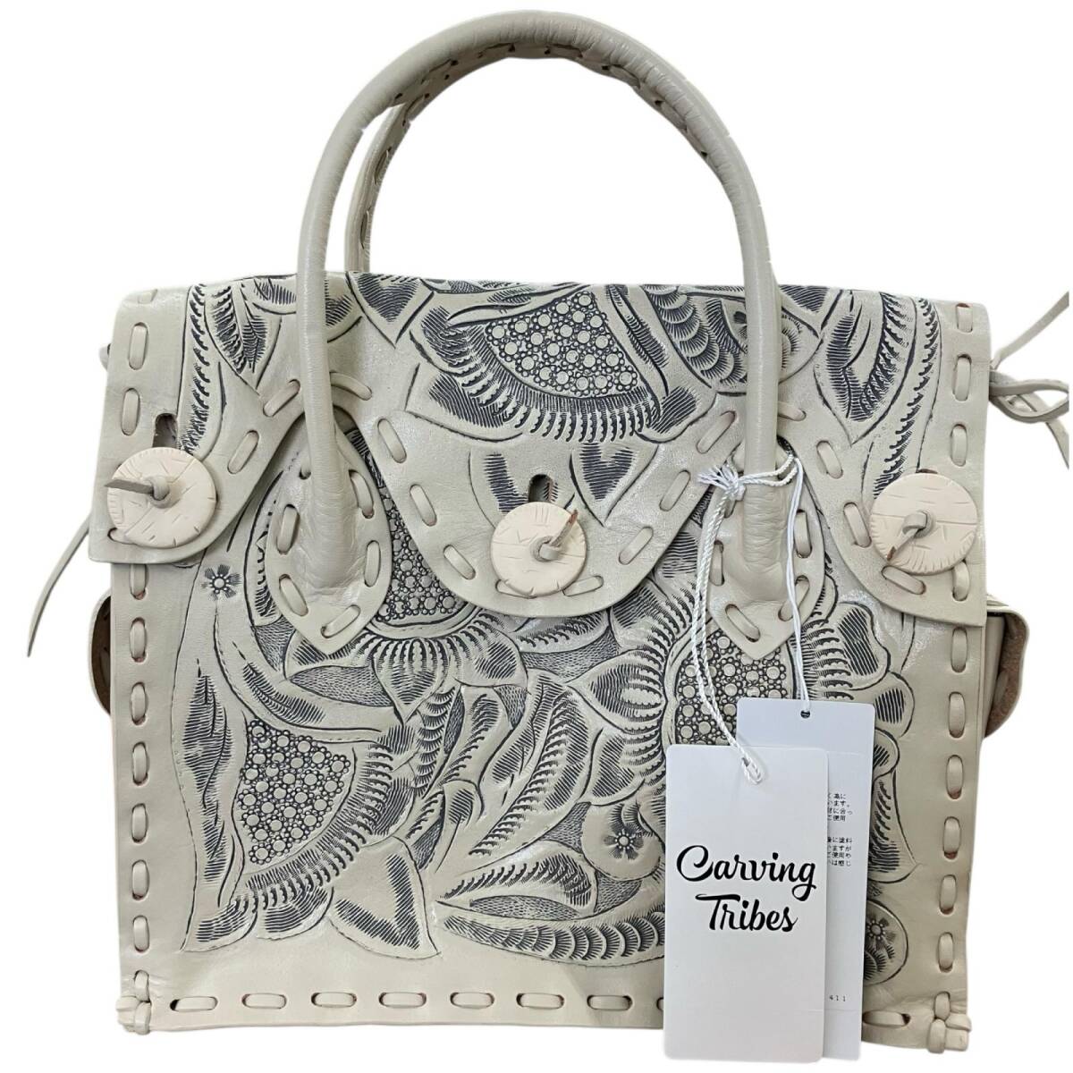SG00001 現状品 GRACE CONTINENTAL グレースコンチネンタル GRACE CONTINENTAL ハンドバッグ 定価¥42.000- キナリ Carving Tribes 牛革 レディース