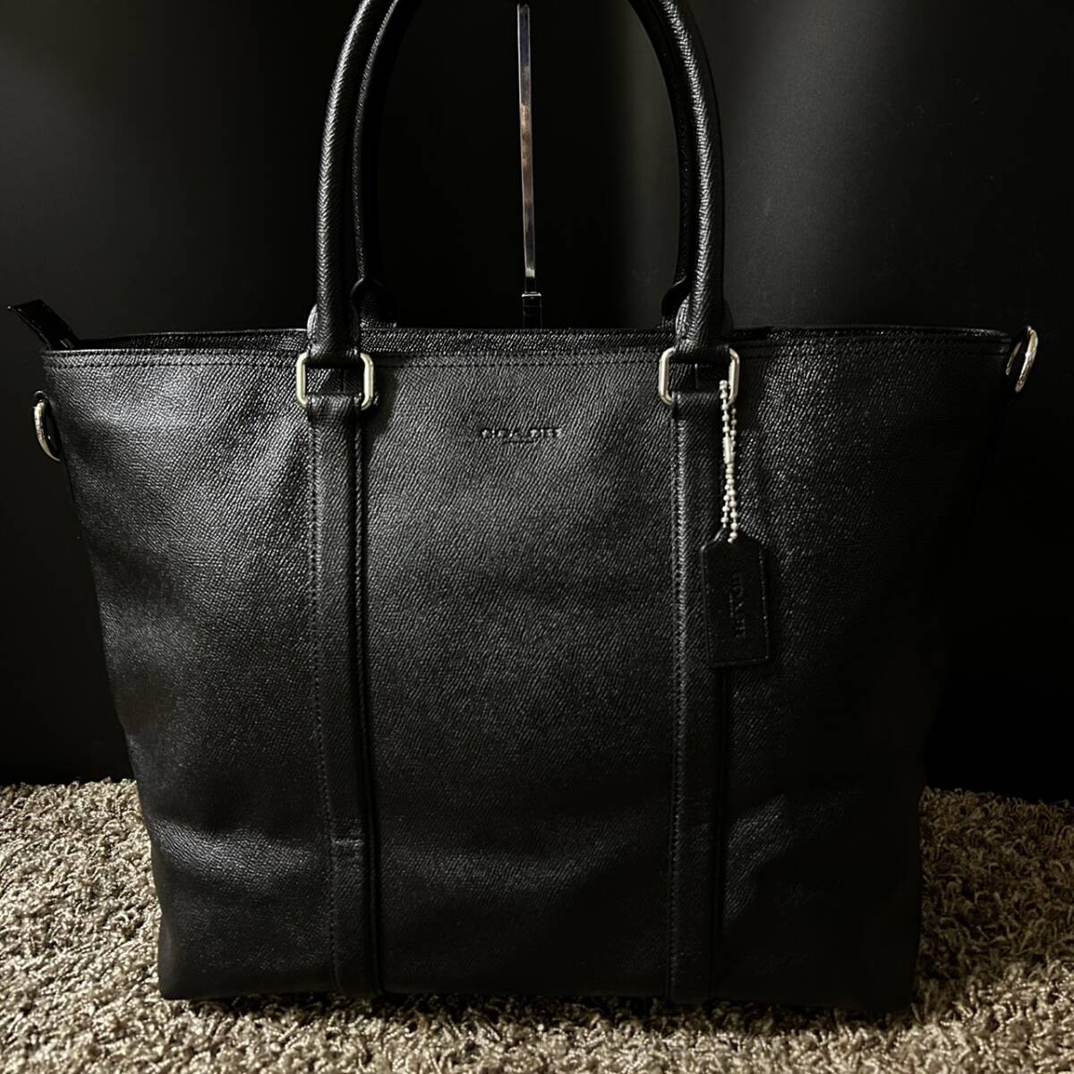 1円~【現行近!!極美品】コーチ COACH トートバッグ ビジネスバッグ メンズ 手提げ 肩掛け A4 PC 書類鞄 2way ブリーフケース 黒 レザー