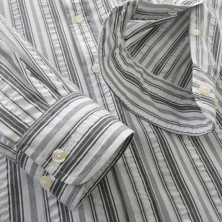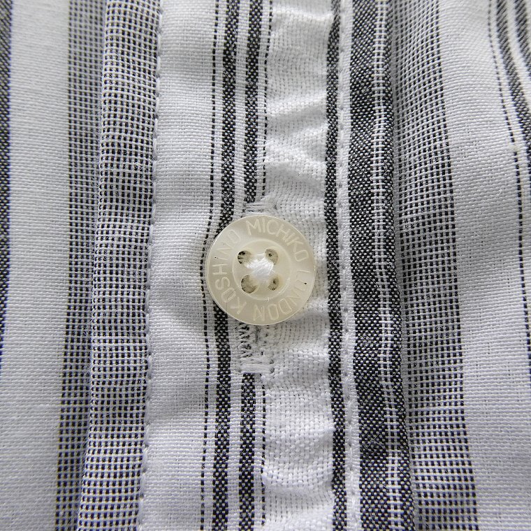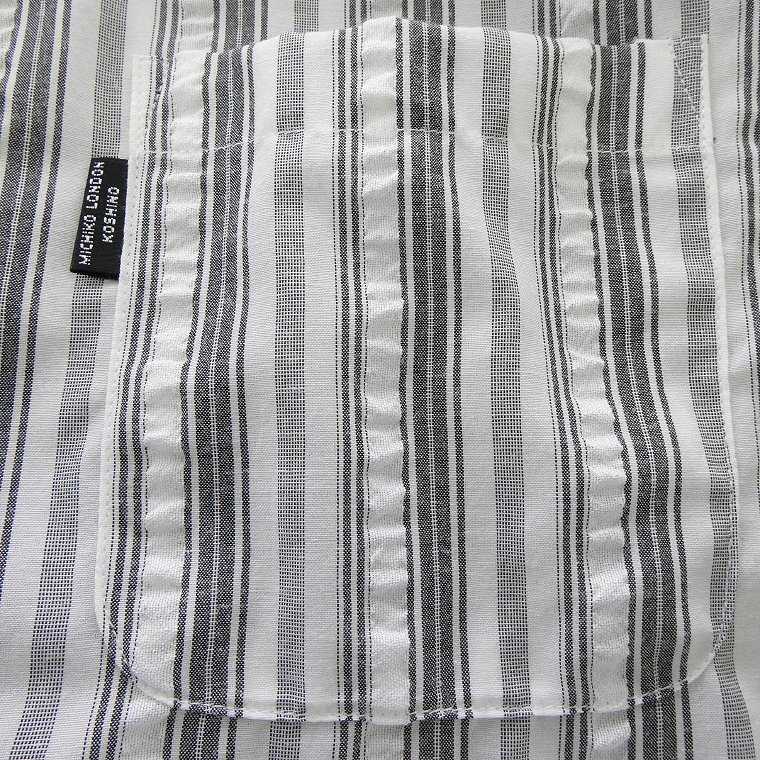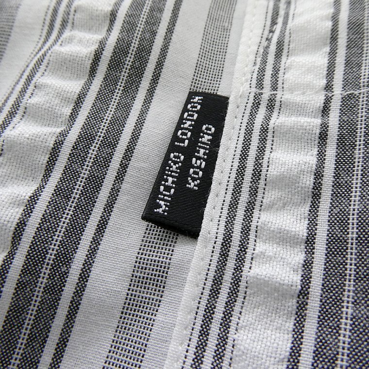 ・胸部分にワンポイントロゴの王道デザイン、MICHIKO LONDONらしいシャツに仕上がっております。 ・汗をかいてもベタつきにくく肌触りがサラっとして涼し気な質感のシアサッカー生地を使用。 ・パンツインが可能な着丈で、オフィスカジュアルにもおすすめの一枚です。 ・万能に合わせやすいレギュラーカラー、センターボックスプリーツ、左胸ポケットあり、袖先はラウンド型のアジャスタブルカフス仕様です。 |