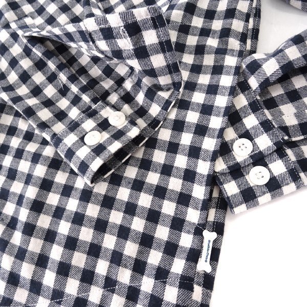 【Sheltie Club】 〈湘南の海〉をテーマとしたブランドコンセプトに沿って、マリンテイストを味付けしたシンプルなスタイルを信条とし、ラフで、気取らず、気張らない、ややゆったりとした着こなしを提案します。 優しい肌当たりと暖かな着心地を兼ね備えたビエラ素材を使用したシャツです。 フロントポケット付きで、季節の変わり目のライトアウターとしても着用して頂けます。 ポケット部分にブランドロゴを刺繍、左裾の側面に骨をモチーフとしたビスを装飾しており、細部にまでこだわった仕上がりとなっています。 |