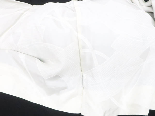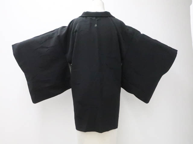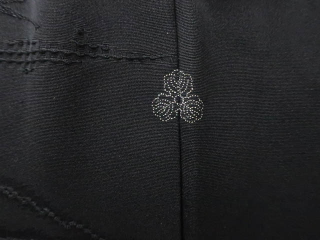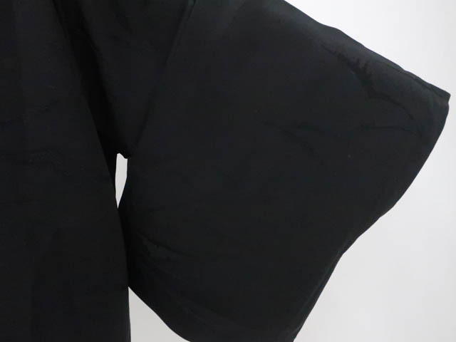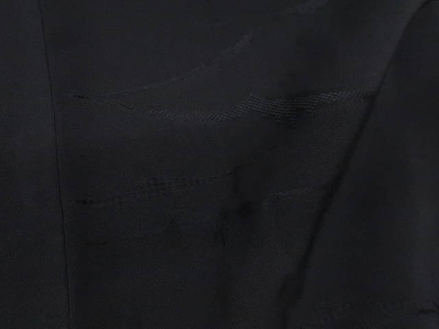 リサイクル商品のため、左後身後裾、紐に汚れがございますが着用可能なお品です。 地色は黒です。 1枚目の画像が近いお色かと思われます。 素材は正絹です。 |