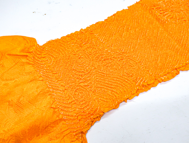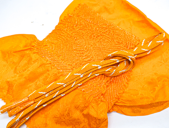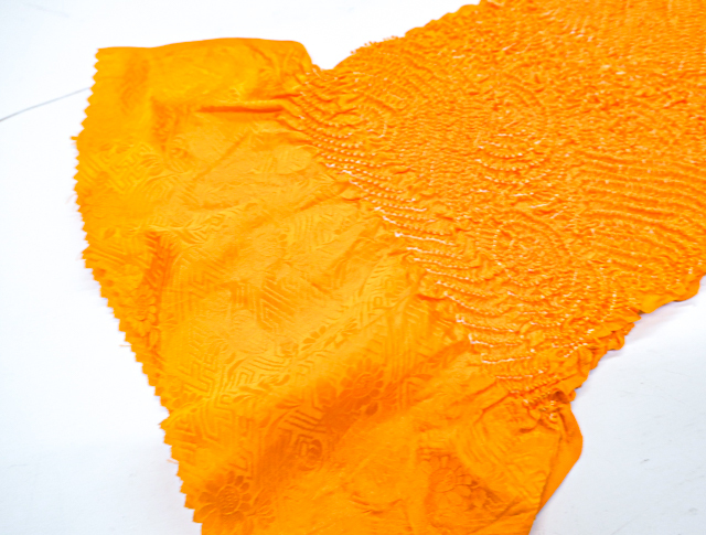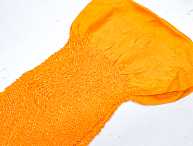 リサイクル商品のため、帯揚げにシボ伸びがございますが、着用可能な状態のお品です。 |