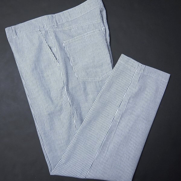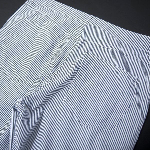 | 新品 未使用 紙タグあり Lサイズ(写真は別サイズを使用) ※商品に記載されたサイズ・寸法です※ ウエスト88cm(内回り1周) 股上29cm 股下75cm 裾幅20.5cm 腿幅31cm(股下10cm部分) 本体:綿100% 別布:ポリエステル65% 綿35% ネイビー×ホワイト |