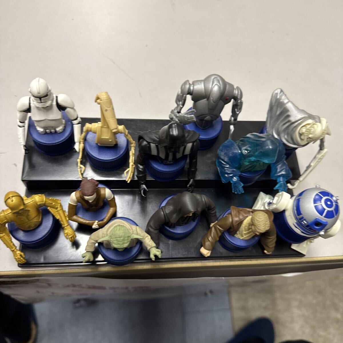 ディスプレイ用に両面テープ使用している場合があります。剥がしやすいテープ使用していますが、足裏などに少し両面テープが残っている場合があります。