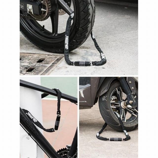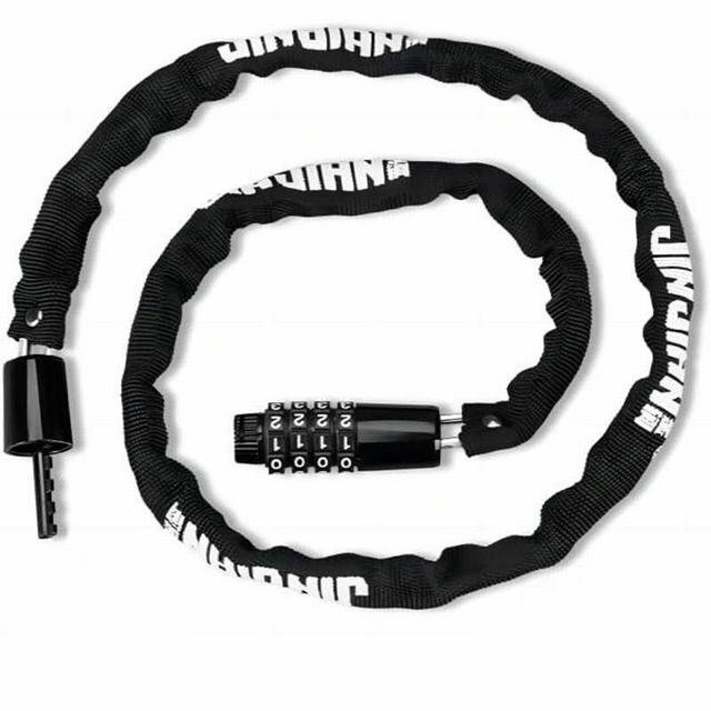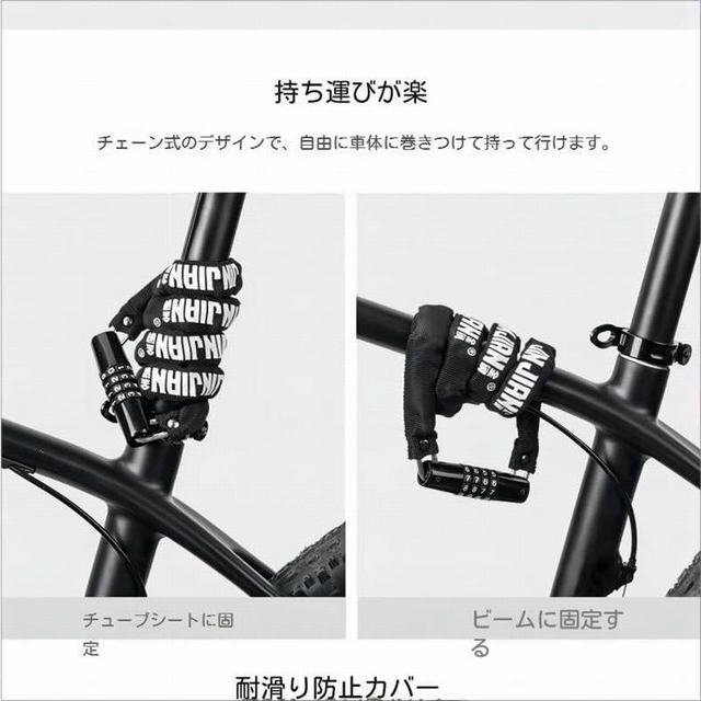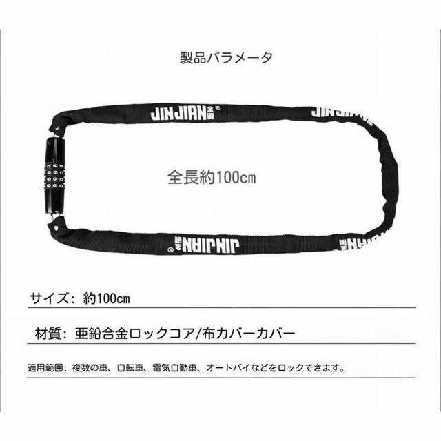 自転車 チェーンロック 自転車鍵 4桁ダイヤル式 自転車ロック 軽量 長さ100cm 重さ504g バイクロック パスワード自由設定 カギ不要 黒 4mm