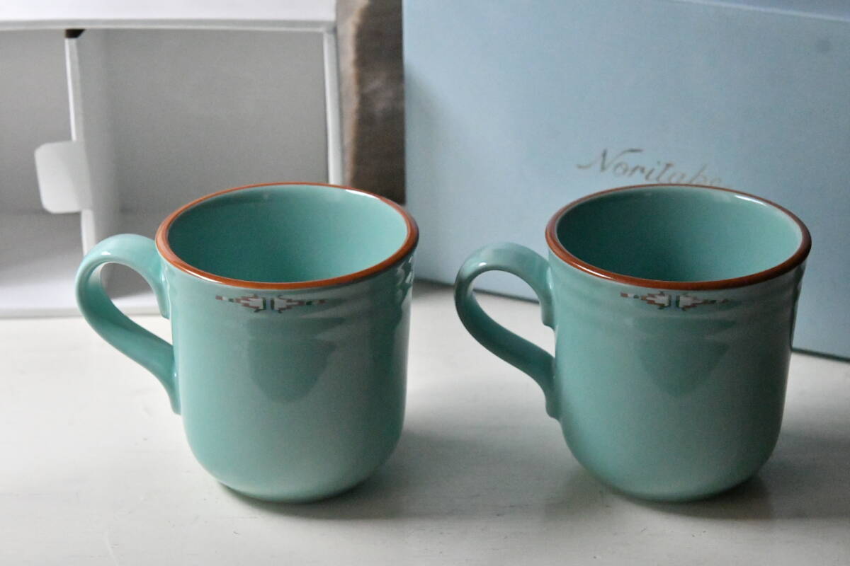 ペア ボルダーリッジ マグカップ ノリタケ 昭和レトロ ステキなグリーン ターコイズ