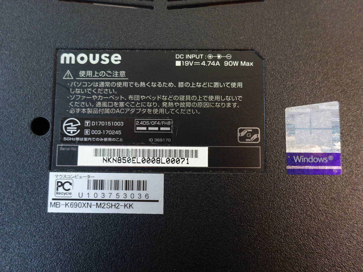 マウスコンピューターMB-K690XN-M2SH2-KKゲーミングPC/Win11/Corei7-8750H/NVMeSSD512GB/HDD1TB/メモリ16GB/MX150/動作品(2511181)