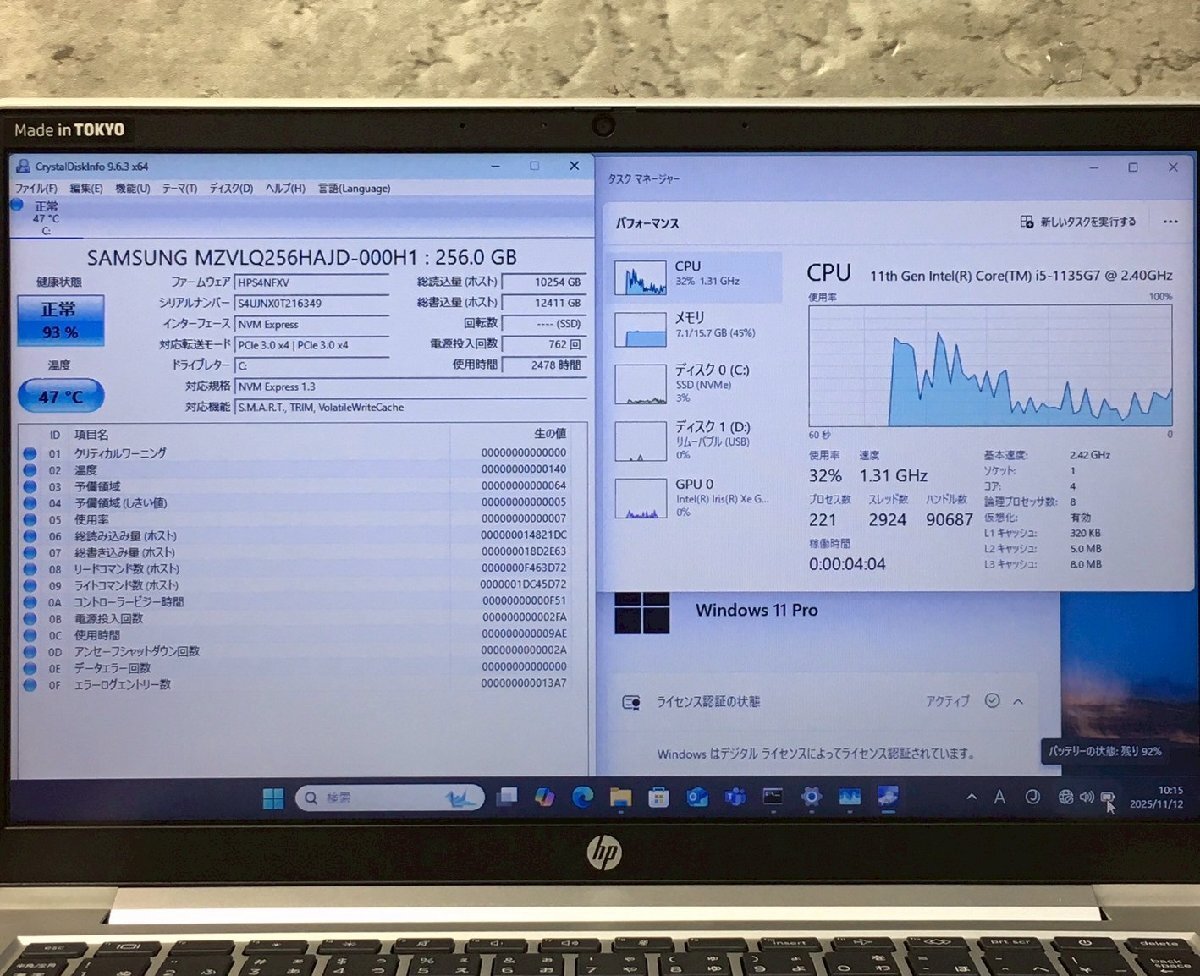 | ライセンス確認 | 〇 | CrystalDiskinfo | 〇 |