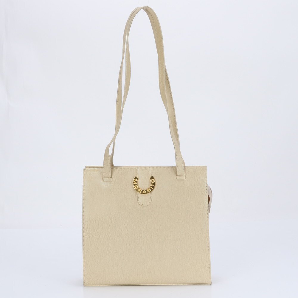 1円■モラビト■レザー ダブル ショルダーバッグ 肩掛け トート ハンド ゴールド 金具 ベージュ レディース EEE BW6-4