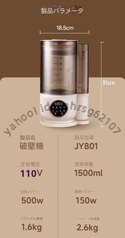 豆乳メーカー 乾燥大豆 110V全自動 濾過不要 スープメーカー 豆乳ブレンダー ミキサー ブレンダー 調理 ブレンダー 24H予約1500ml