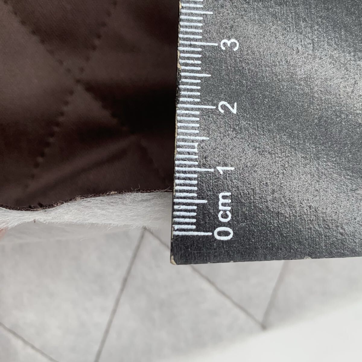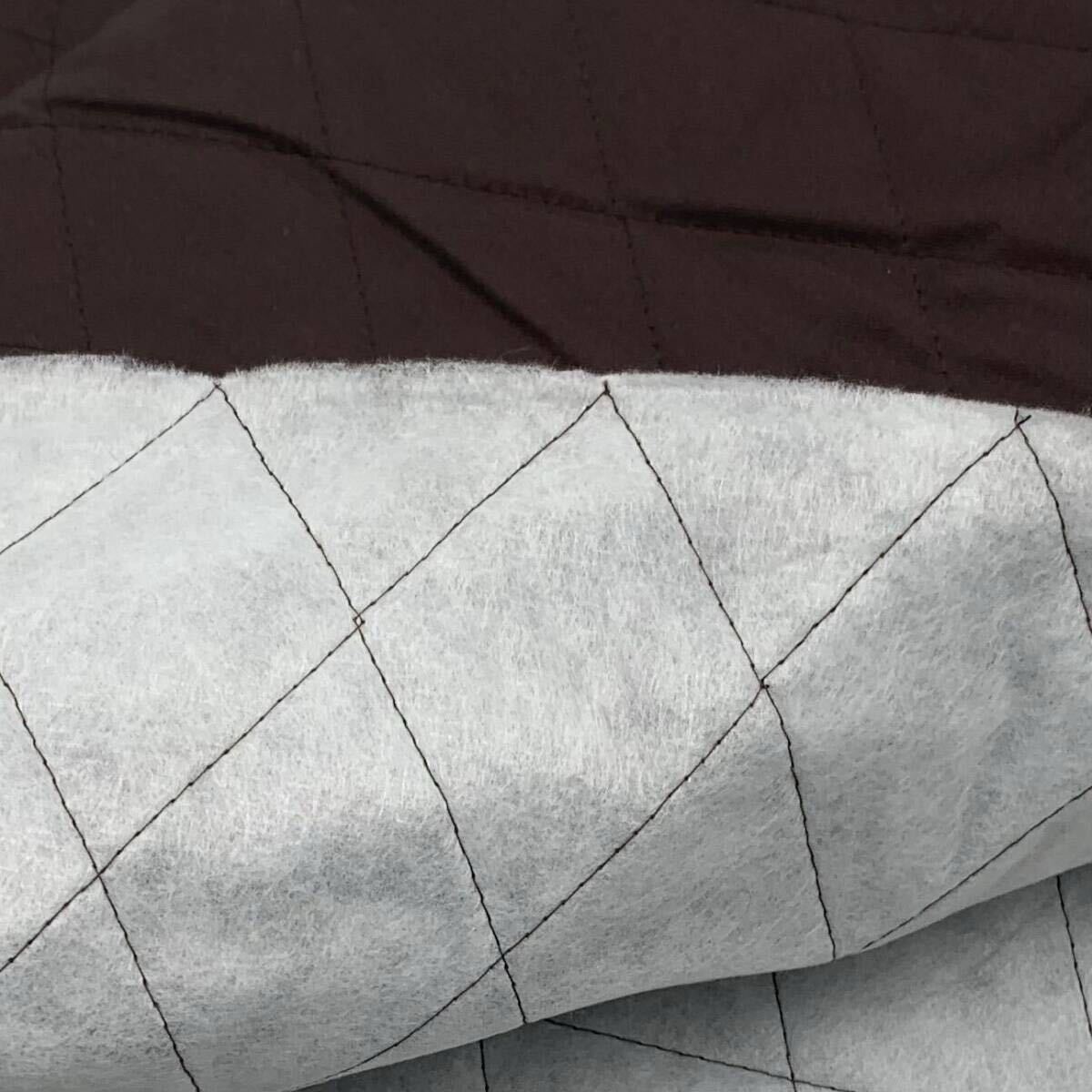 表面のブラウン系は綿100%でできており、細かなヘリンボーン柄になっています。