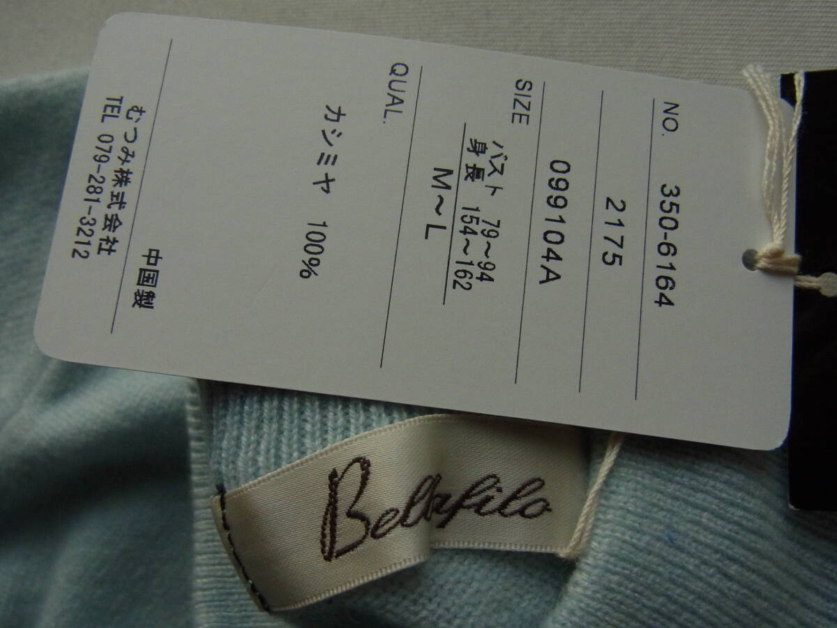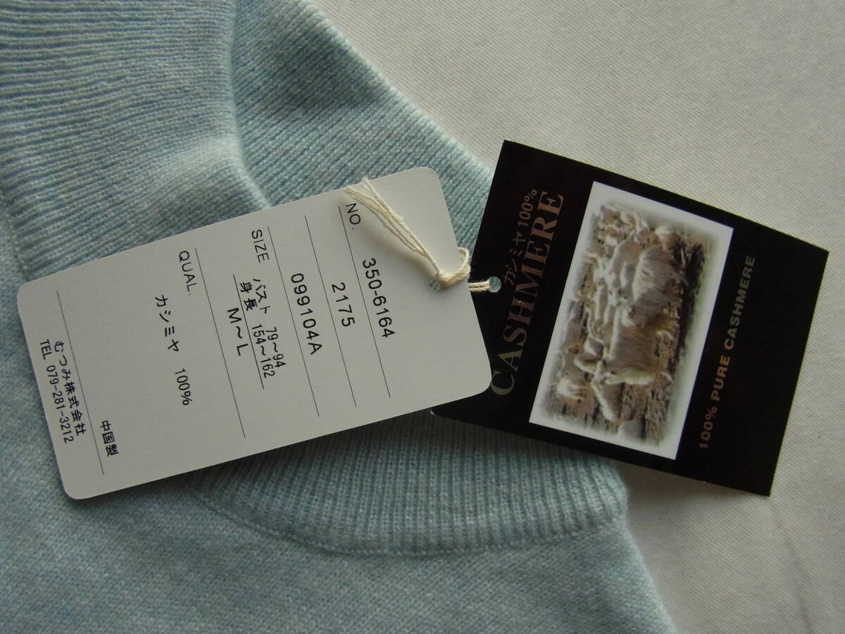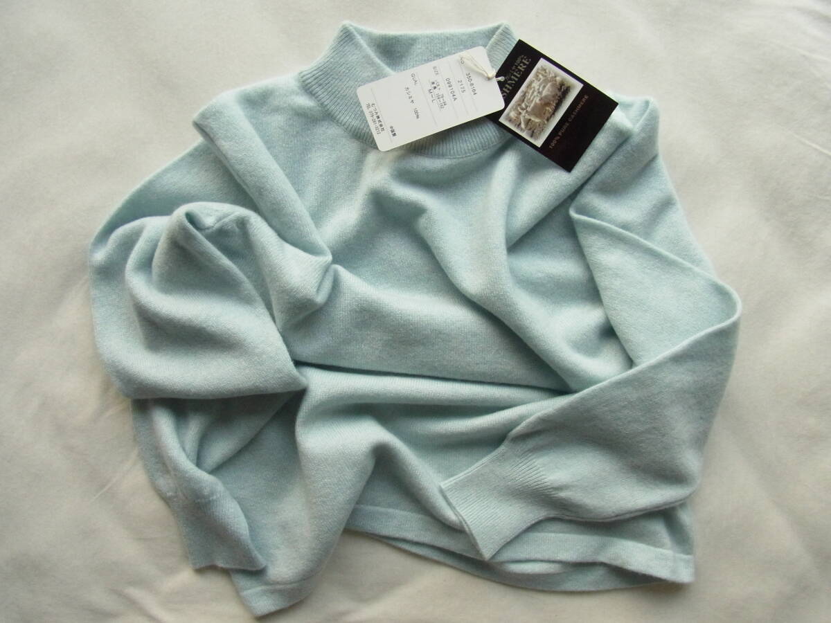 カシミヤ100% モックネックセーター サイズ M~L サックスブルー系 未着用品   Bellafilo