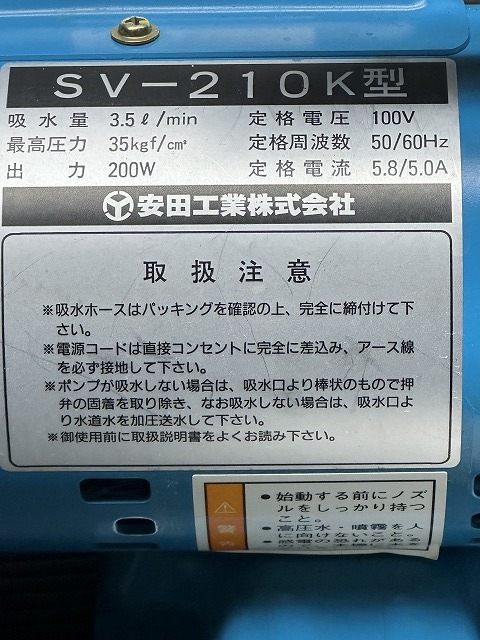 | *** B1★安田工業 100V 電動ポンプ 電動式ポータブル動噴 SV-210K型 *** |